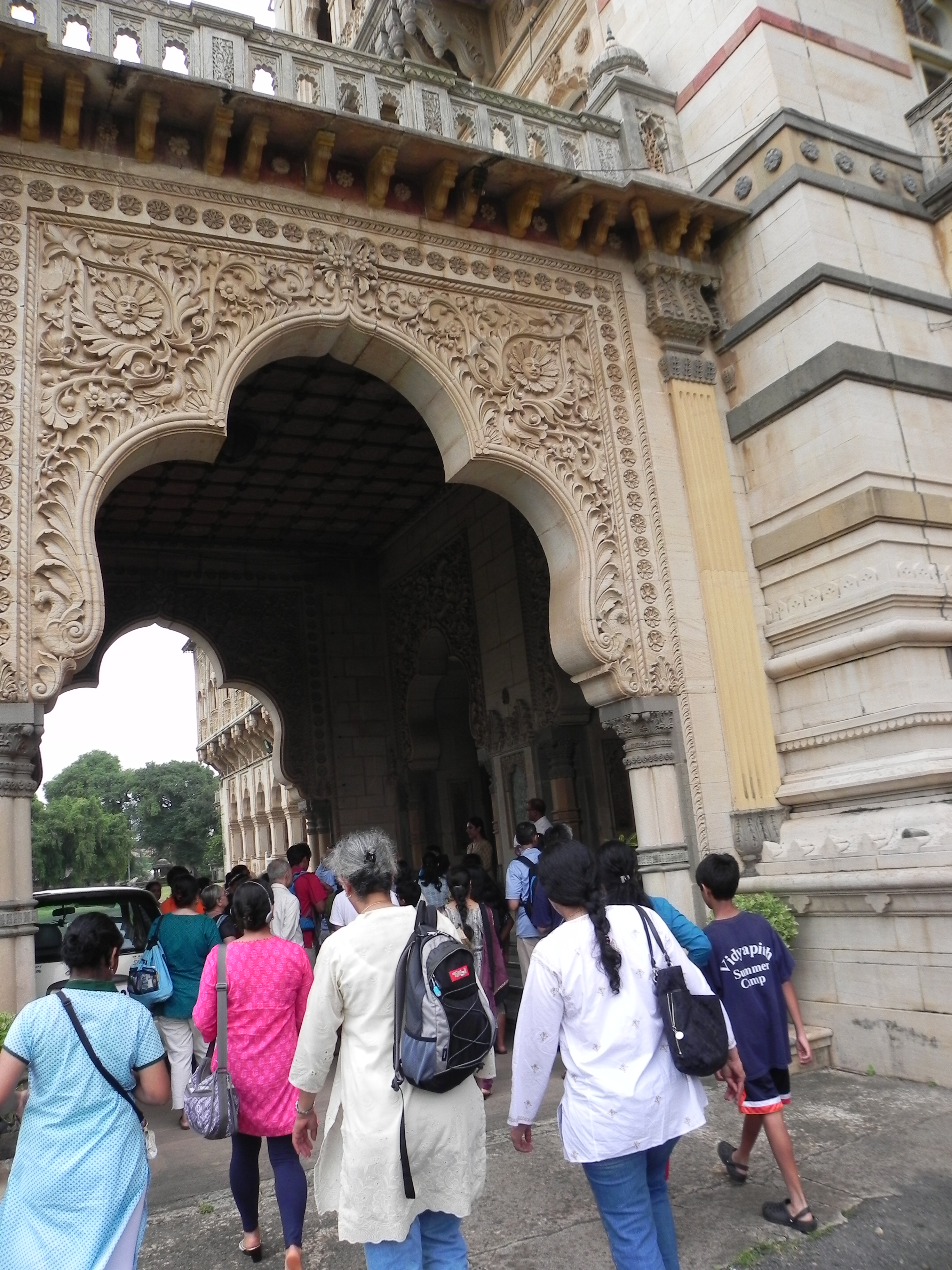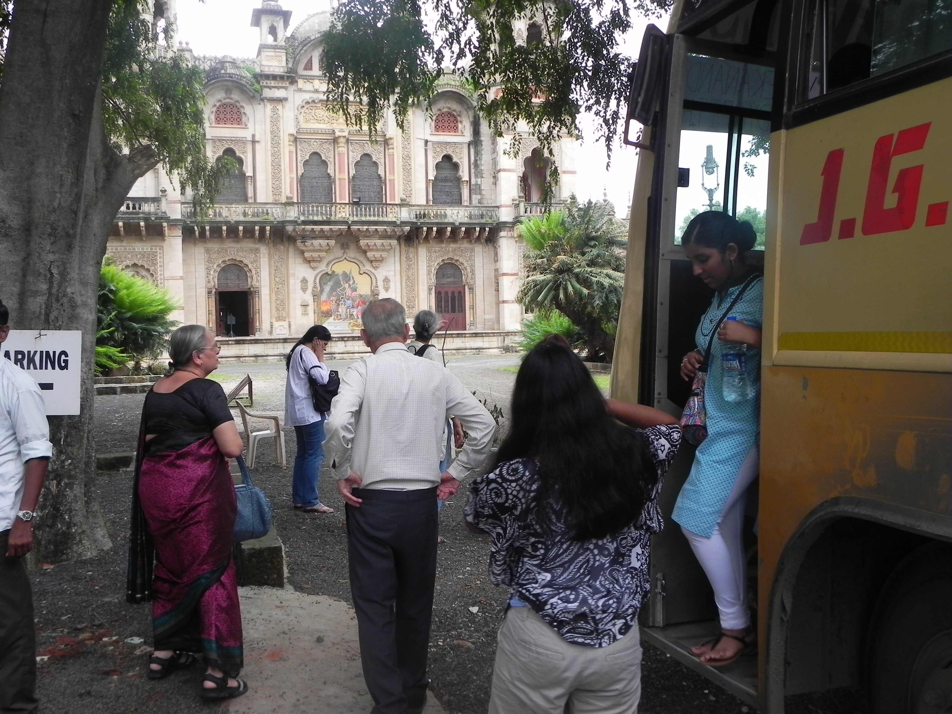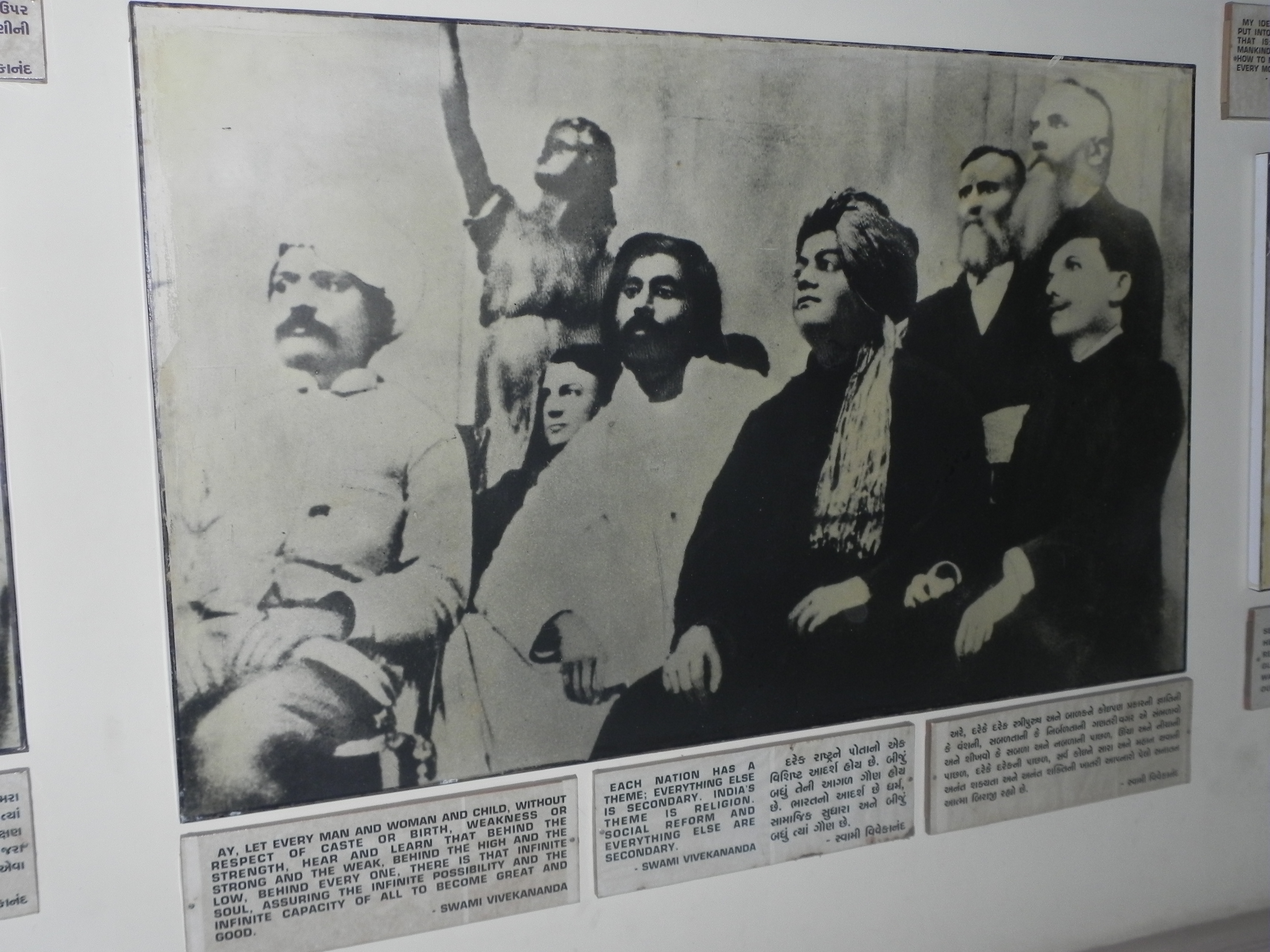 The bus came to the Royal Orchid Central hotel to take us all for an excursion of Vadodara and Lakshmi Vilas Palace. When we got down at the palace, Mukundbhai was waiting to greet us and to make sure we had a good time. He had paid for our tickets. It is a huge palace that is worth seeing. We can see how Sayajirao Gaekwad combined eastern and western art and architecture in the palace. A guide showed us all possible rooms that we can see. We also saw Ravi Varma’s paintings. From the literature it seems that Swami Vivekananda had visited the palace and had seen Ravi Varma’s paintings. He also had praised Maharaja Sayajirao Gaekwas. Swami Vivekananda had told Prince Martand Varma at Trivandrum that “of all the ruling princes he had met, he had been most impressed with the capacity, patriotism, energy and foresight of H.H. the Gaekwad of Baroda.” Swamiji was also perhaps impressed with the Maharani of Gaekwad because he wrote on February 17, 1901 to Miss Macleod from Belur Math “I hope you will go to Baroda and see Maharani” Rasheshbhai guided the bus driver, so we could see few major sites of the old city of Vadodara.