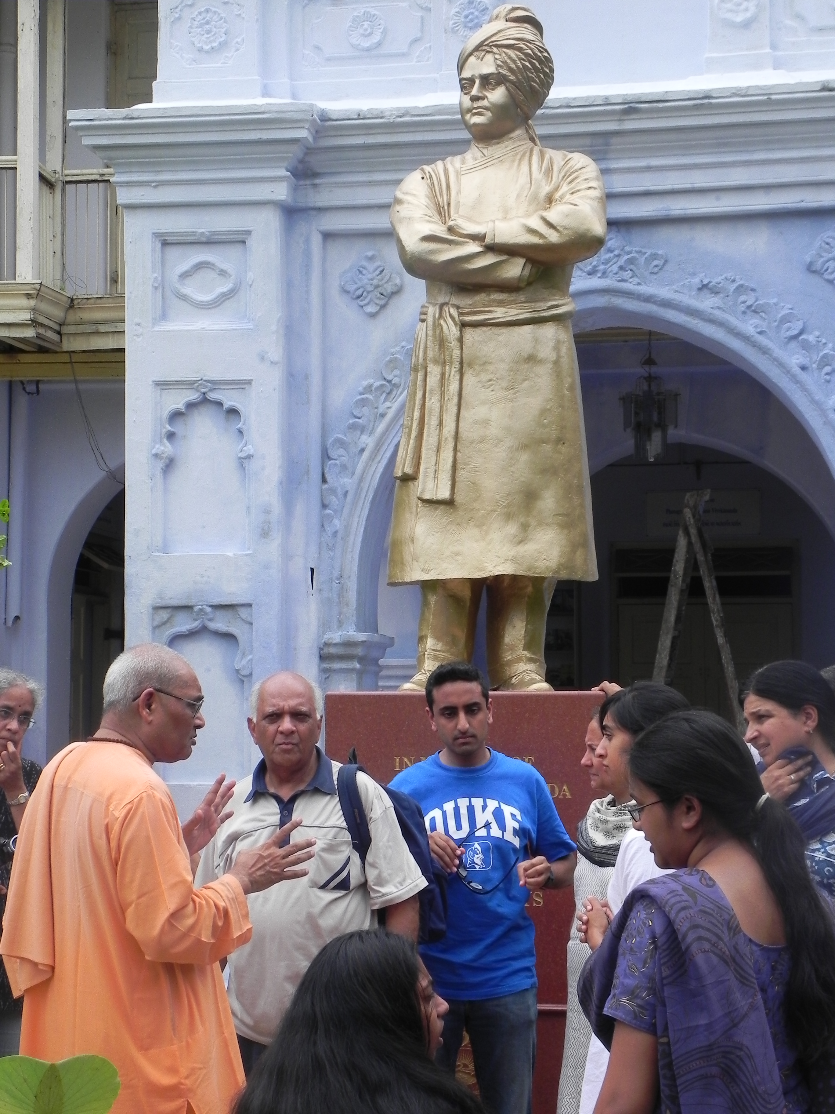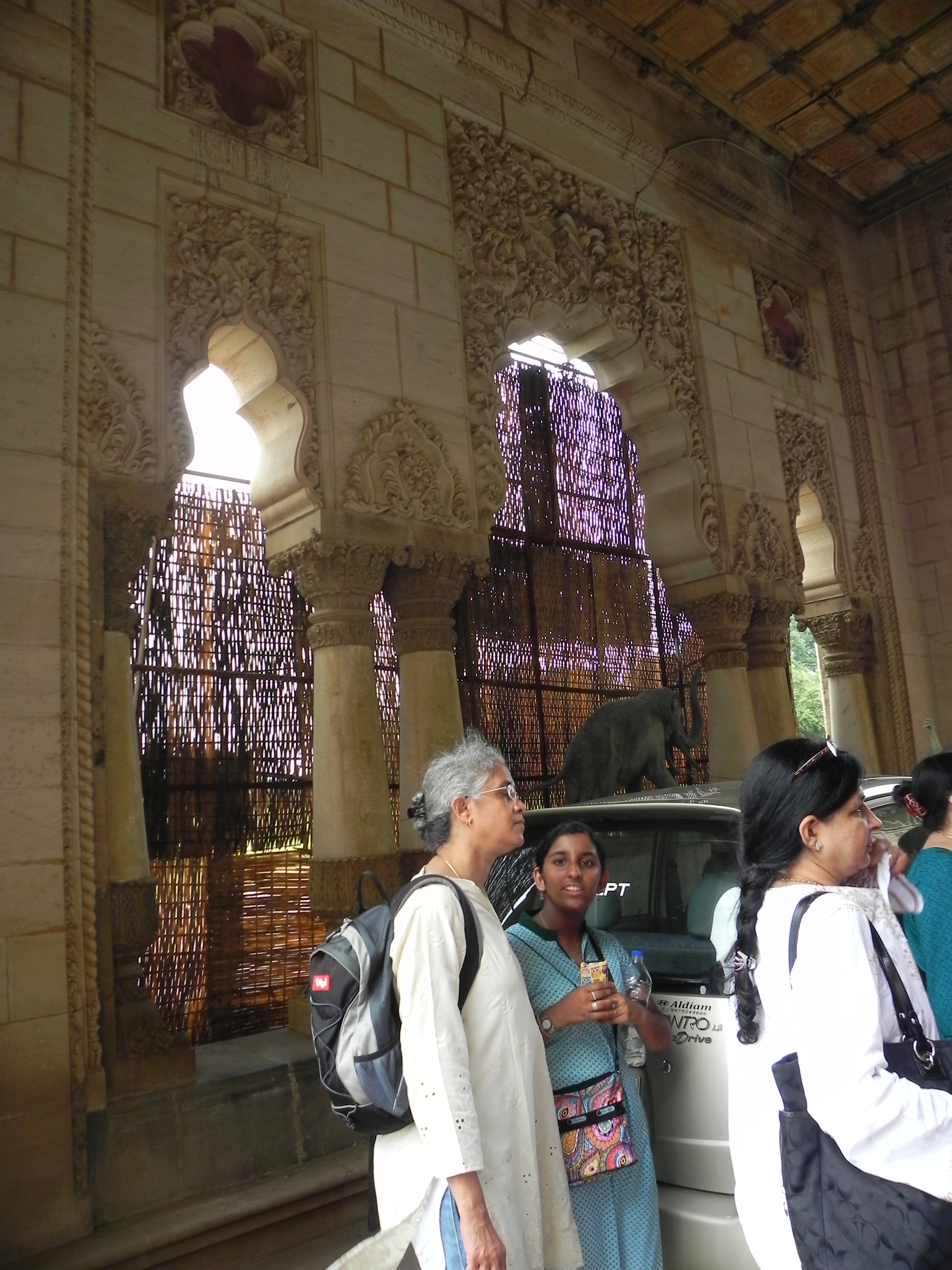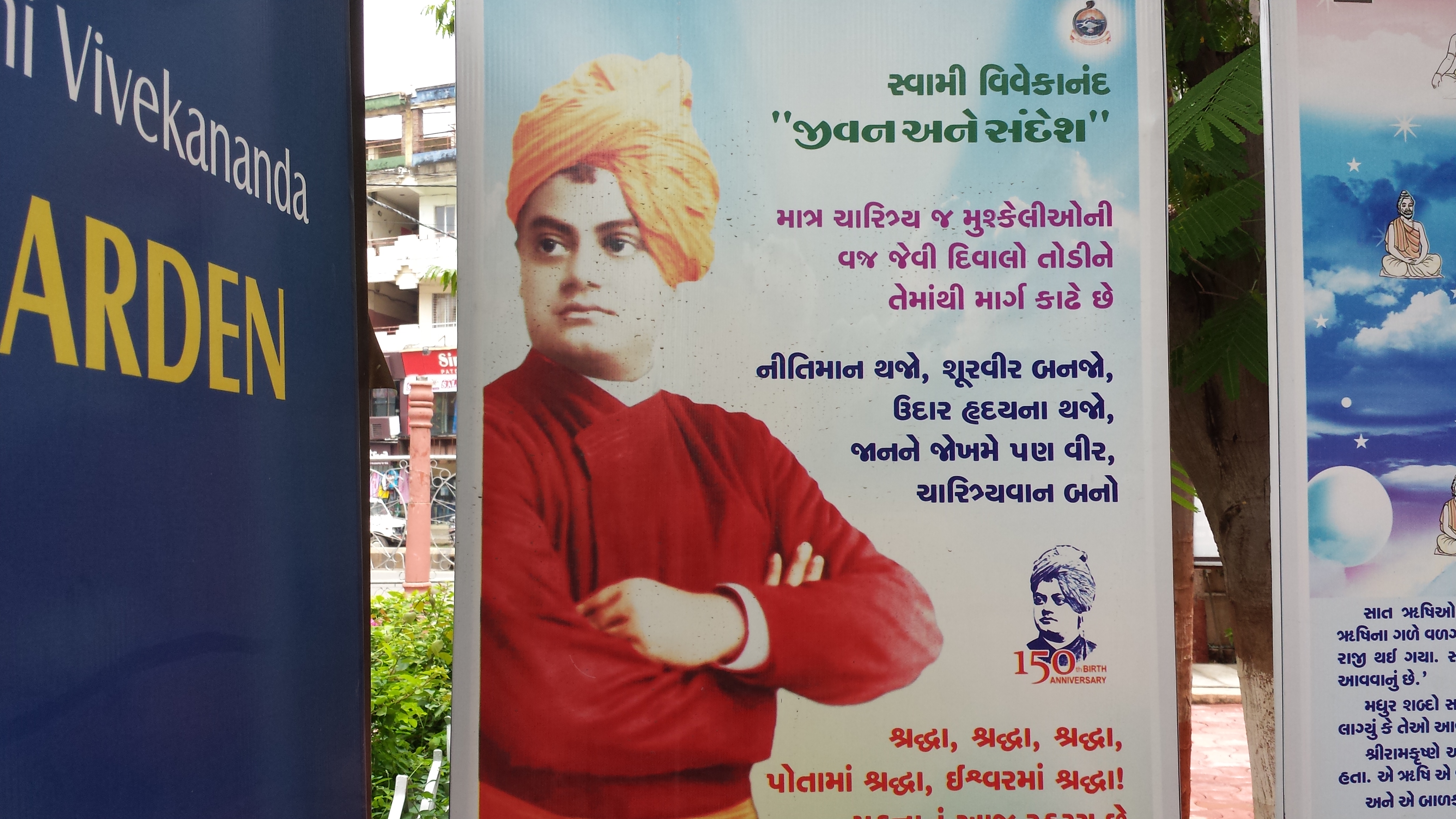 The bus came to the Royal Orchid Central hotel to take us all for an excursion of Vadodara and Lakshmi Vilas Palace. When we got down at the palace, Mukundbhai was waiting to greet us and to make sure we had a good time. He had paid for our tickets. It is a huge palace that is worth seeing. We can see how Sayajirao Gaekwad combined eastern and western art and architecture in the palace. A guide showed us all possible rooms that we can see. We also saw Ravi Varma’s paintings. From the literature it seems that Swami Vivekananda had visited the palace and had seen Ravi Varma’s paintings. He also had praised Maharaja Sayajirao Gaekwas. Swami Vivekananda had told Prince Martand Varma at Trivandrum that “of all the ruling princes he had met, he had been most impressed with the capacity, patriotism, energy and foresight of H.H. the Gaekwad of Baroda.” Swamiji was also perhaps impressed with the Maharani of Gaekwad because he wrote on February 17, 1901 to Miss Macleod from Belur Math “I hope you will go to Baroda and see Maharani” Rasheshbhai guided the bus driver, so we could see few major sites of the old city of Vadodara.