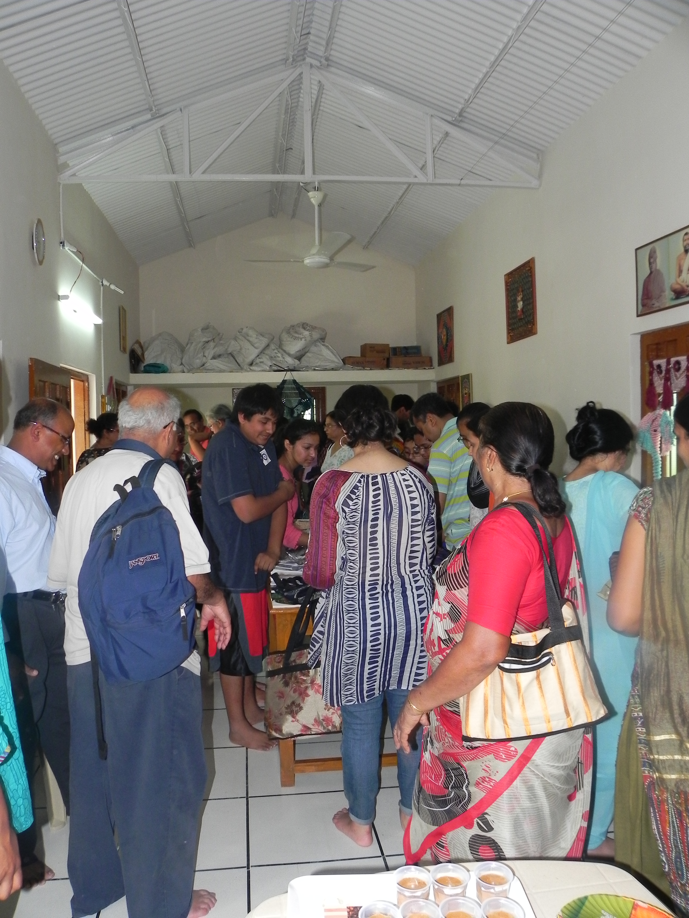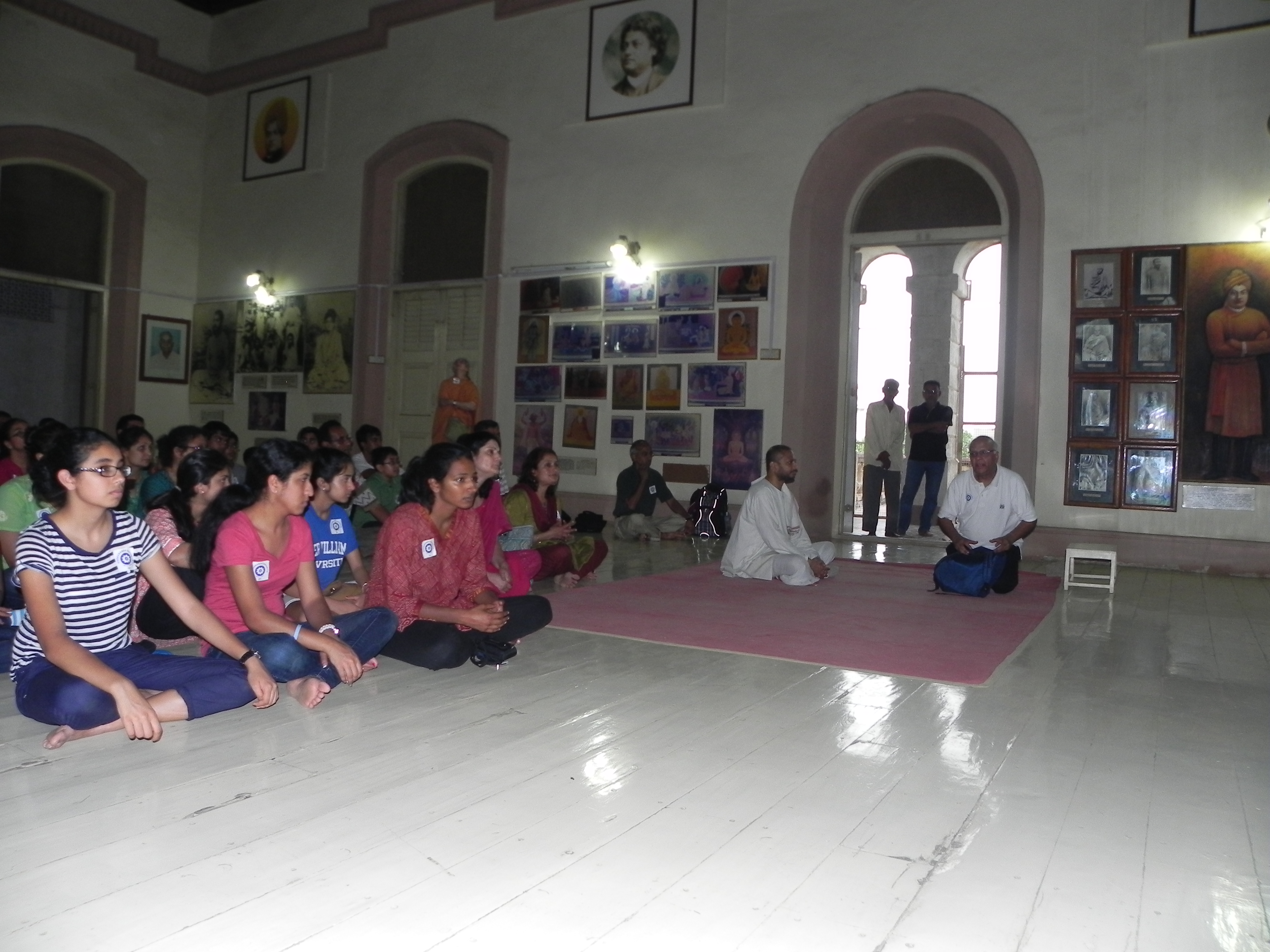 Now, it was the time for practice. As mentioned before, Nimishbhai found a hall nearby for us. The bus took us there. We all gathered in an empty hall and sat on the floor. It was an air-conditioned room. We practiced the Shanti Mantras, recitations, Bhajan, dhoon and our “Arise! Awake!…” song. For more than two hours we practiced. During the practice there was a very heavy rain storm. It was about 6:45 p.m. and we had to go to Surya Hotel for dinner. When we left, rain had almost stopped.