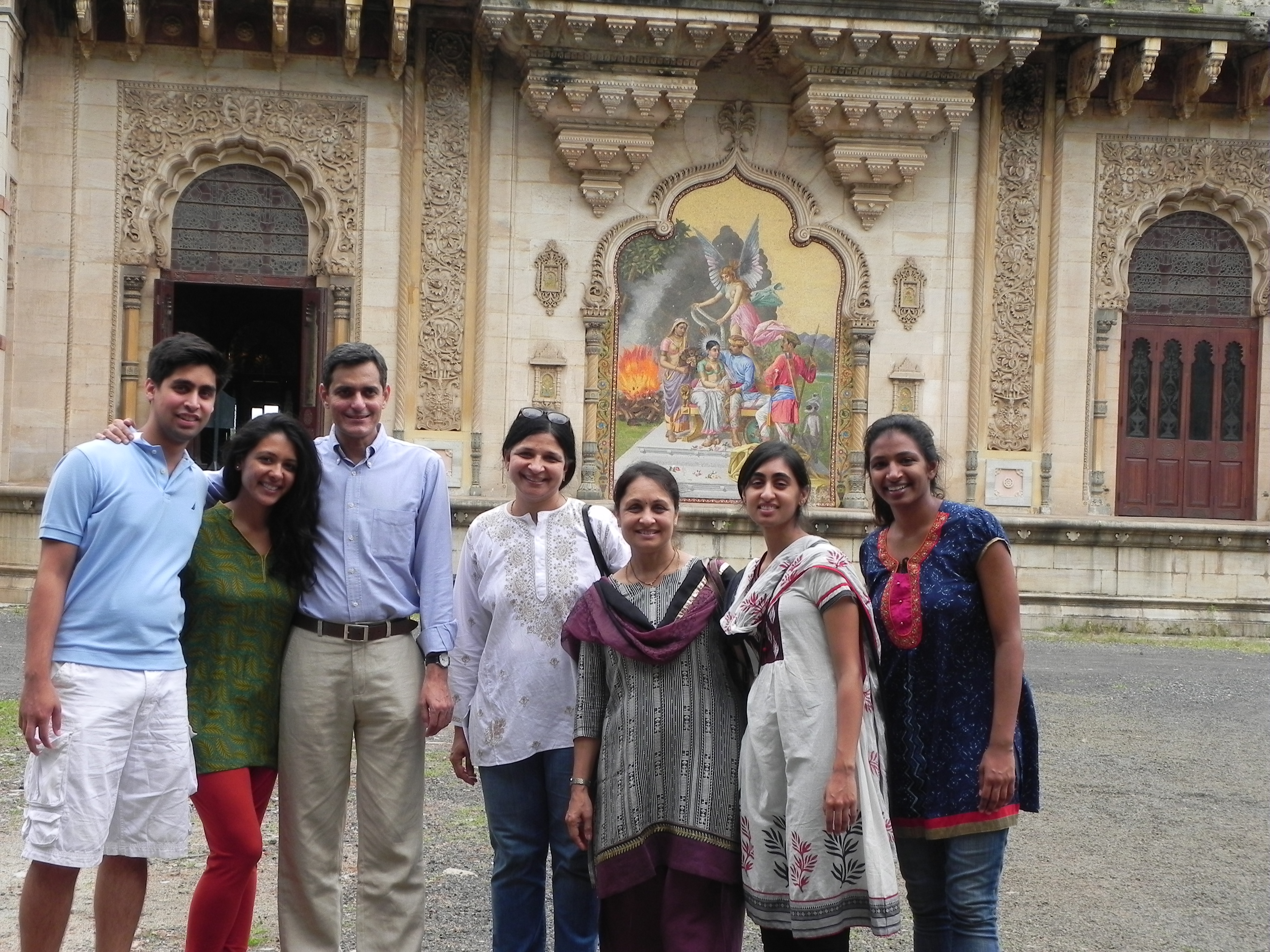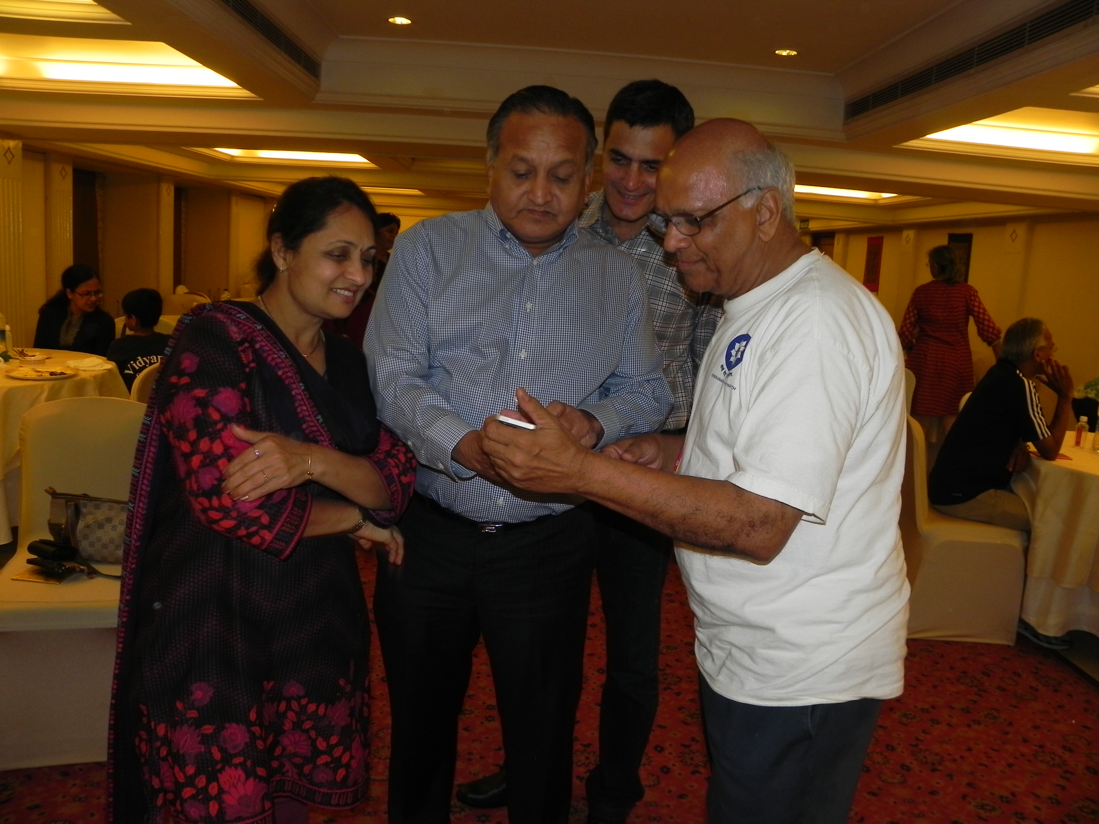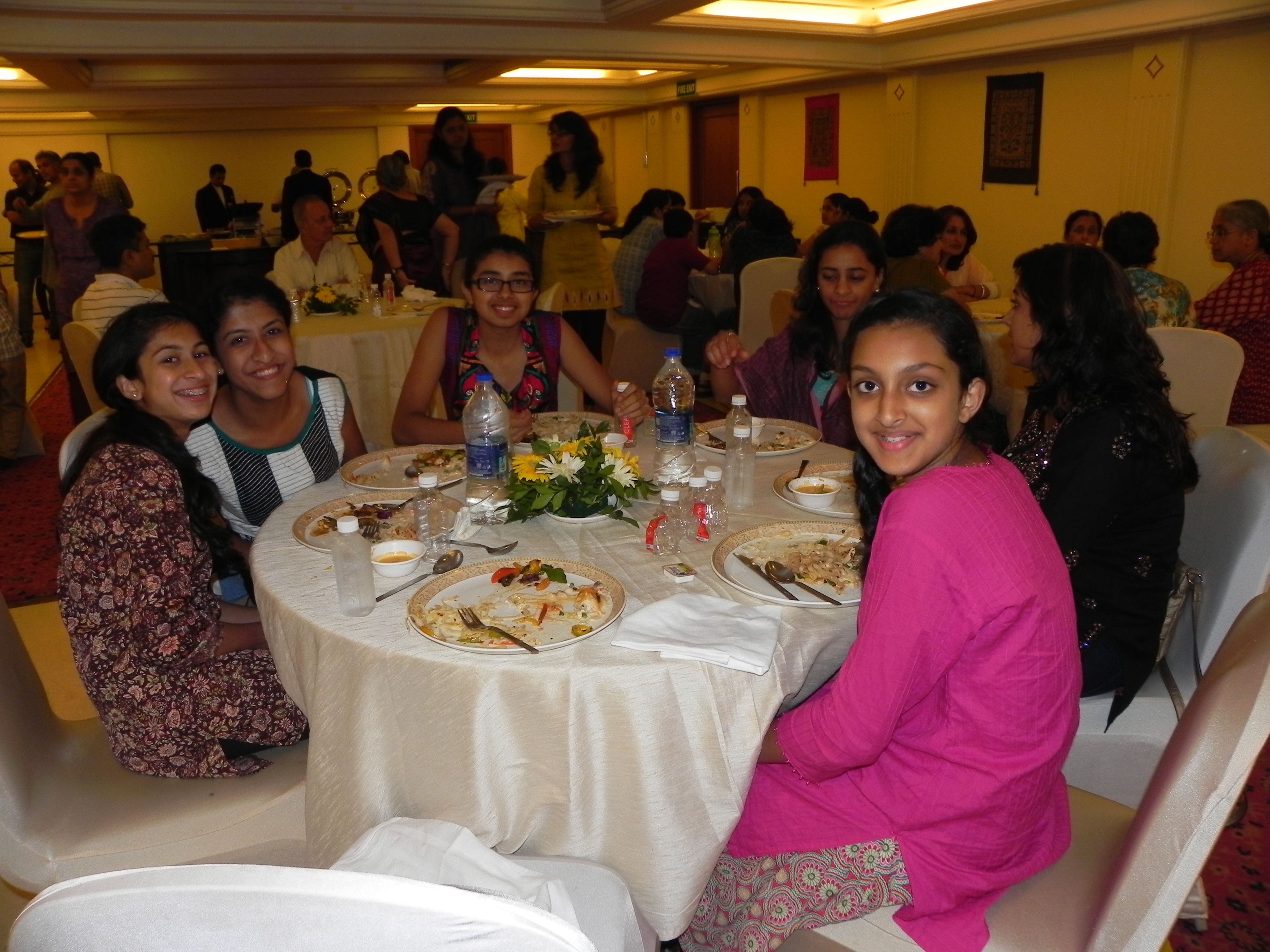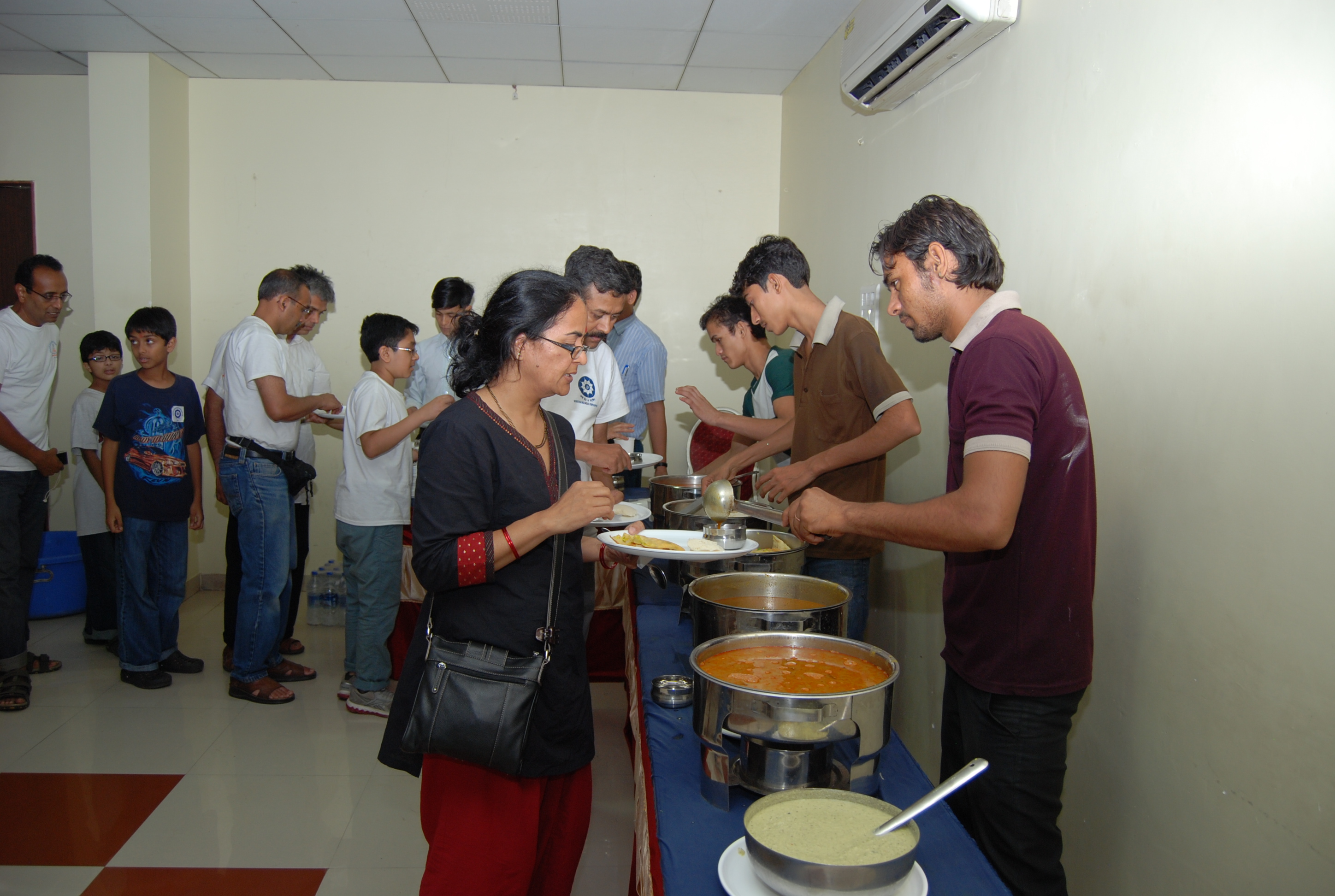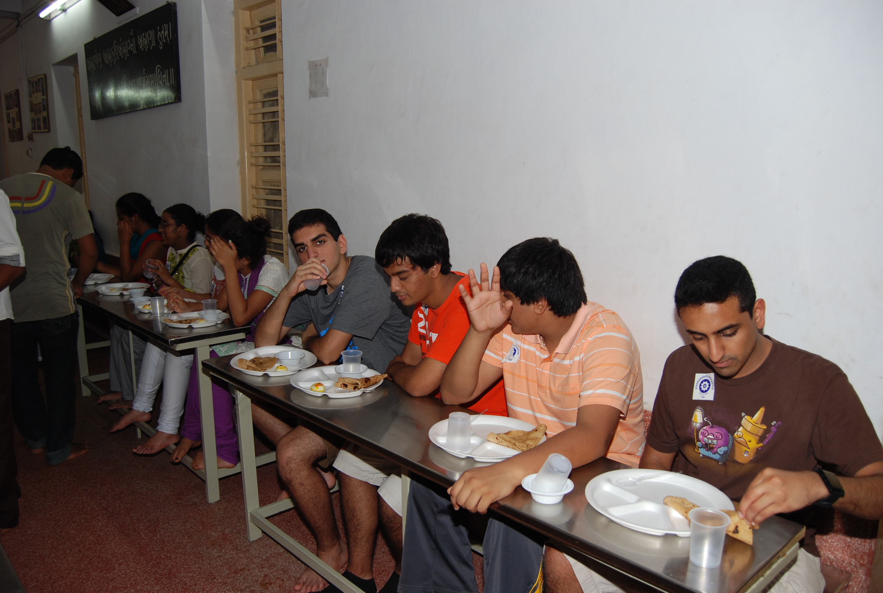 Nimishkaka or Nimishbhai, researched and bargained with all the hotels in the cities we visited. He was in constant communication with hotel owners and managers, and he even visited some of the hotels beforehand to see how they were. After we selected hotels he made all the reservations on our behalf. Nimishbhai took care of all our transportation logistics and anything we needed. He would always tell us to let him know if there was any work. One day, at the last minute we found out that Hotel Royal Orchid Central could not provide us a space for practice. Immediately, Nimishbhai arranged a big hall at a nearby club for our practice. Then, he was worried about our drinking water. He, himself, brought a huge package of large water bottles and carried them all the way upstairs. He was thinking of our needs ahead of time and got them done on time with a smile. He and his family hosted our lunch at Sankalp.
