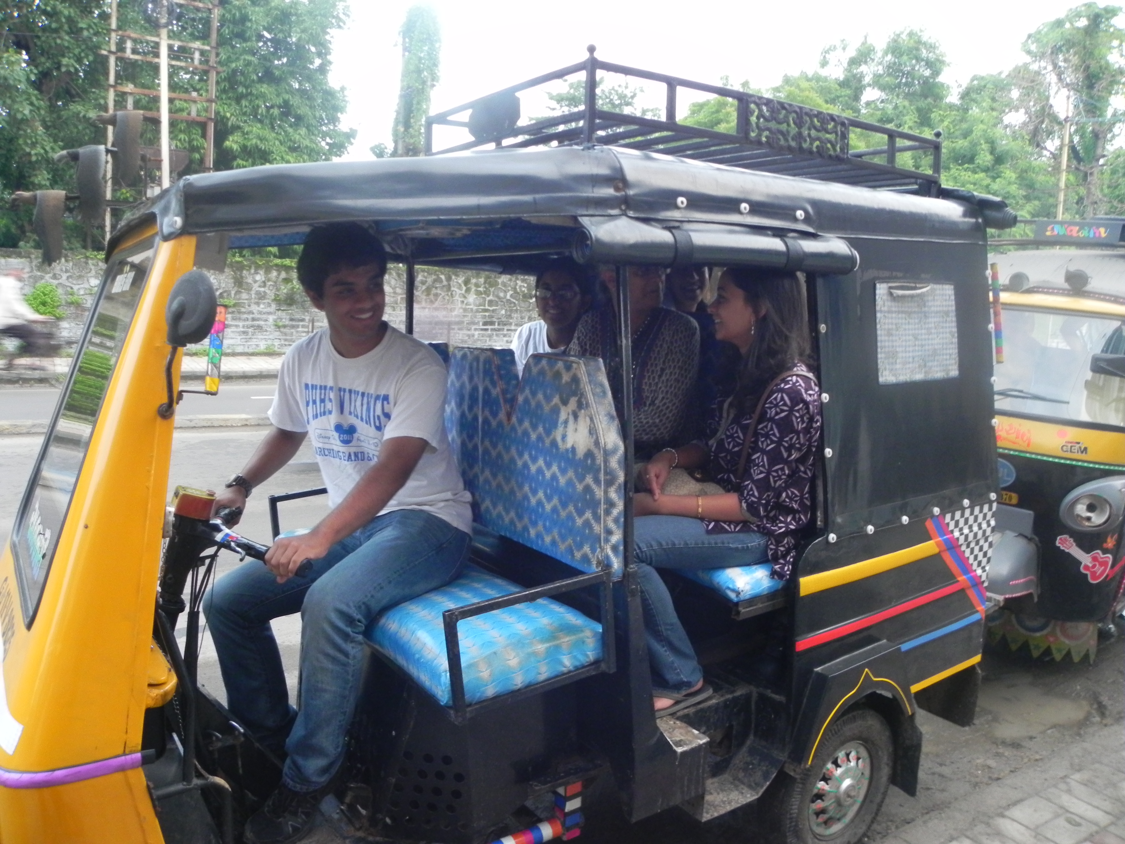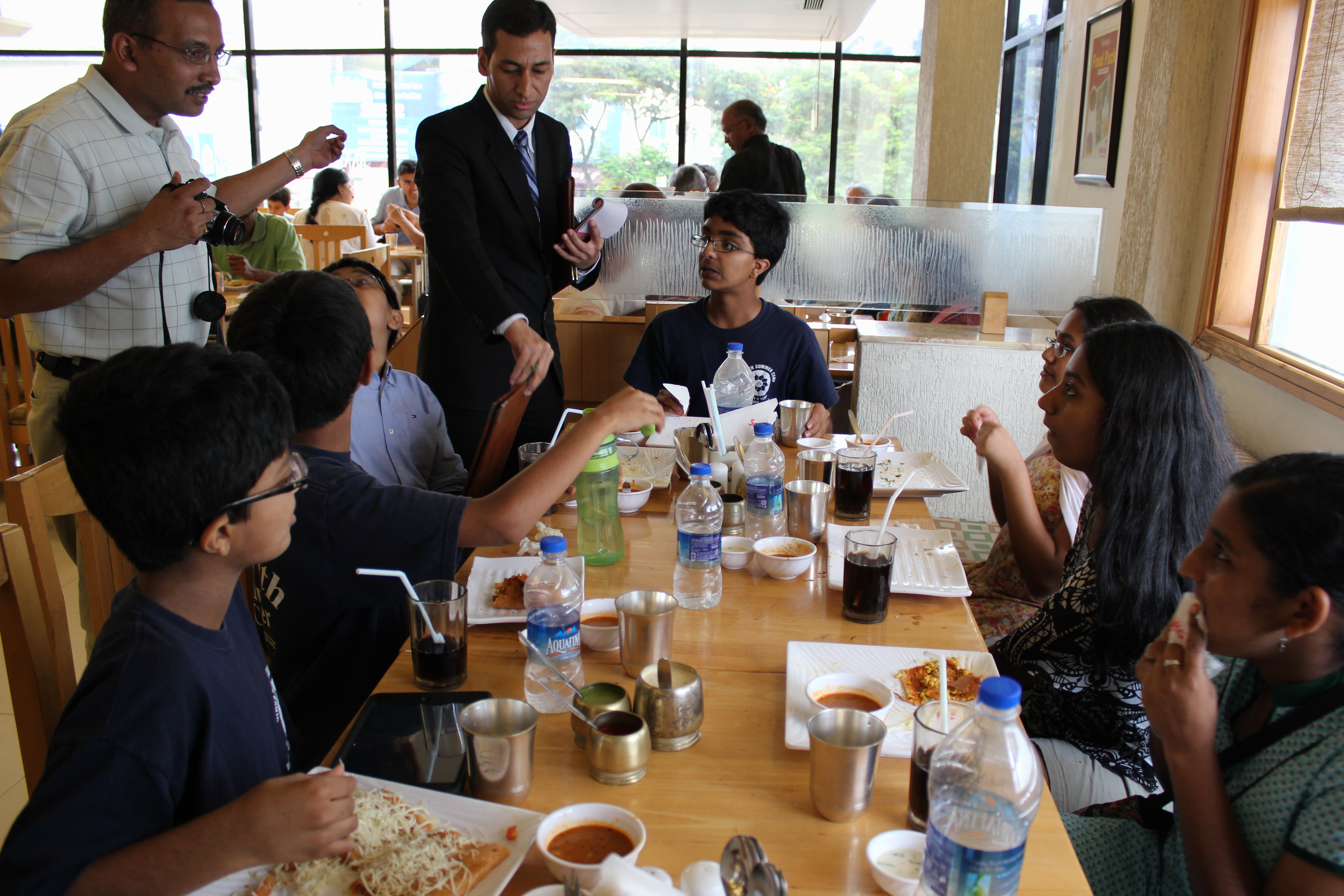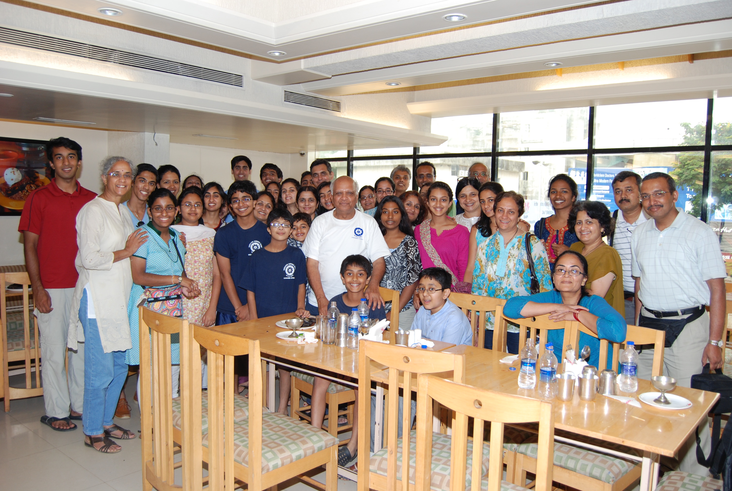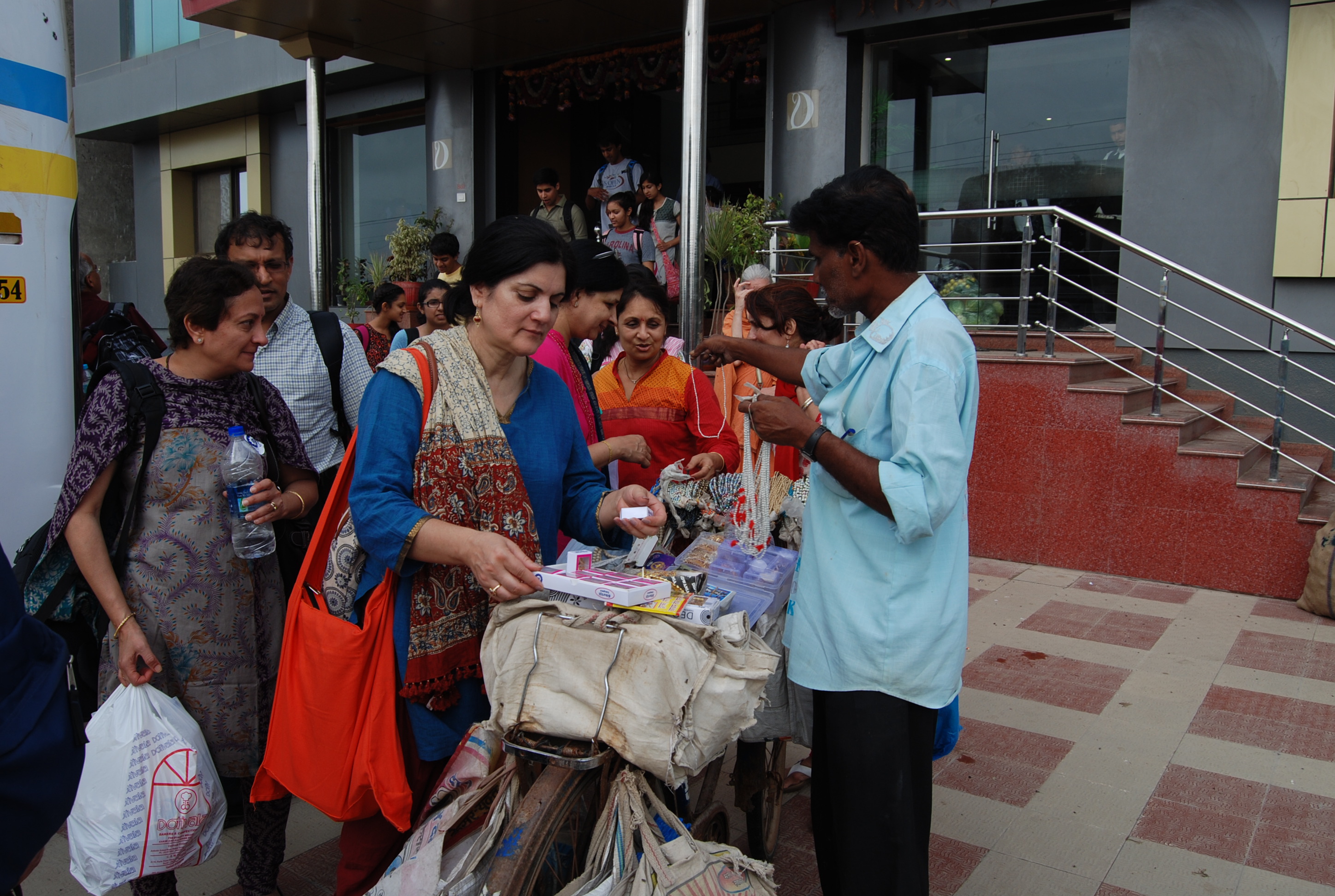Nimishkaka or Nimishbhai, researched and bargained with all the hotels in the cities we visited. He was in constant communication with hotel owners and managers, and he even visited some of the hotels beforehand to see how they were. After we selected hotels he made all the reservations on our behalf. Nimishbhai took care of all our transportation logistics and anything we needed. He would always tell us to let him know if there was any work. One day, at the last minute we found out that Hotel Royal Orchid Central could not provide us a space for practice. Immediately, Nimishbhai arranged a big hall at a nearby club for our practice. Then, he was worried about our drinking water. He, himself, brought a huge package of large water bottles and carried them all the way upstairs. He was thinking of our needs ahead of time and got them done on time with a smile. He and his family hosted our lunch at Sankalp.