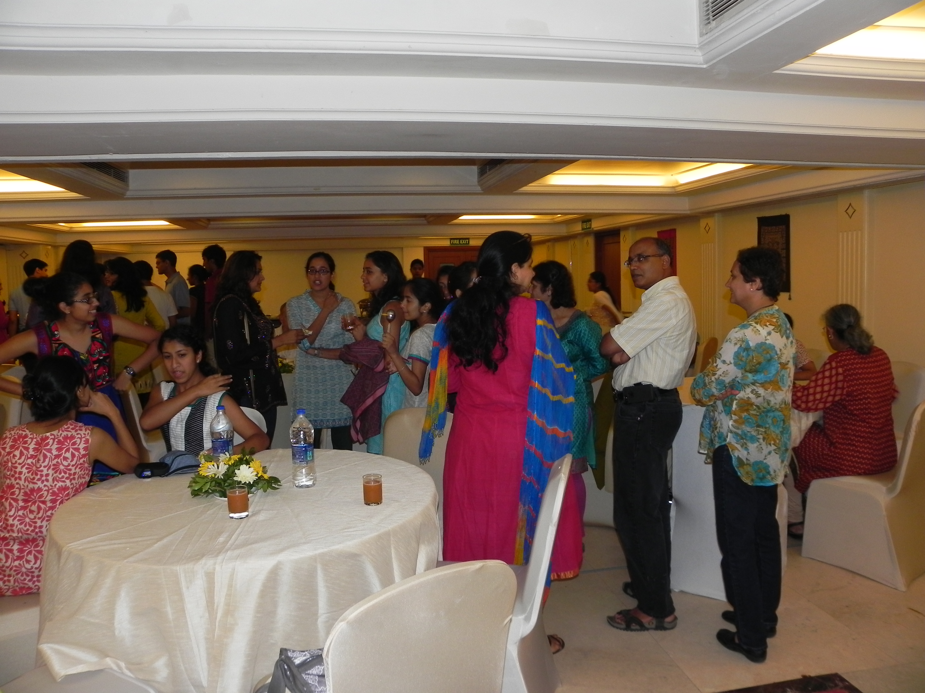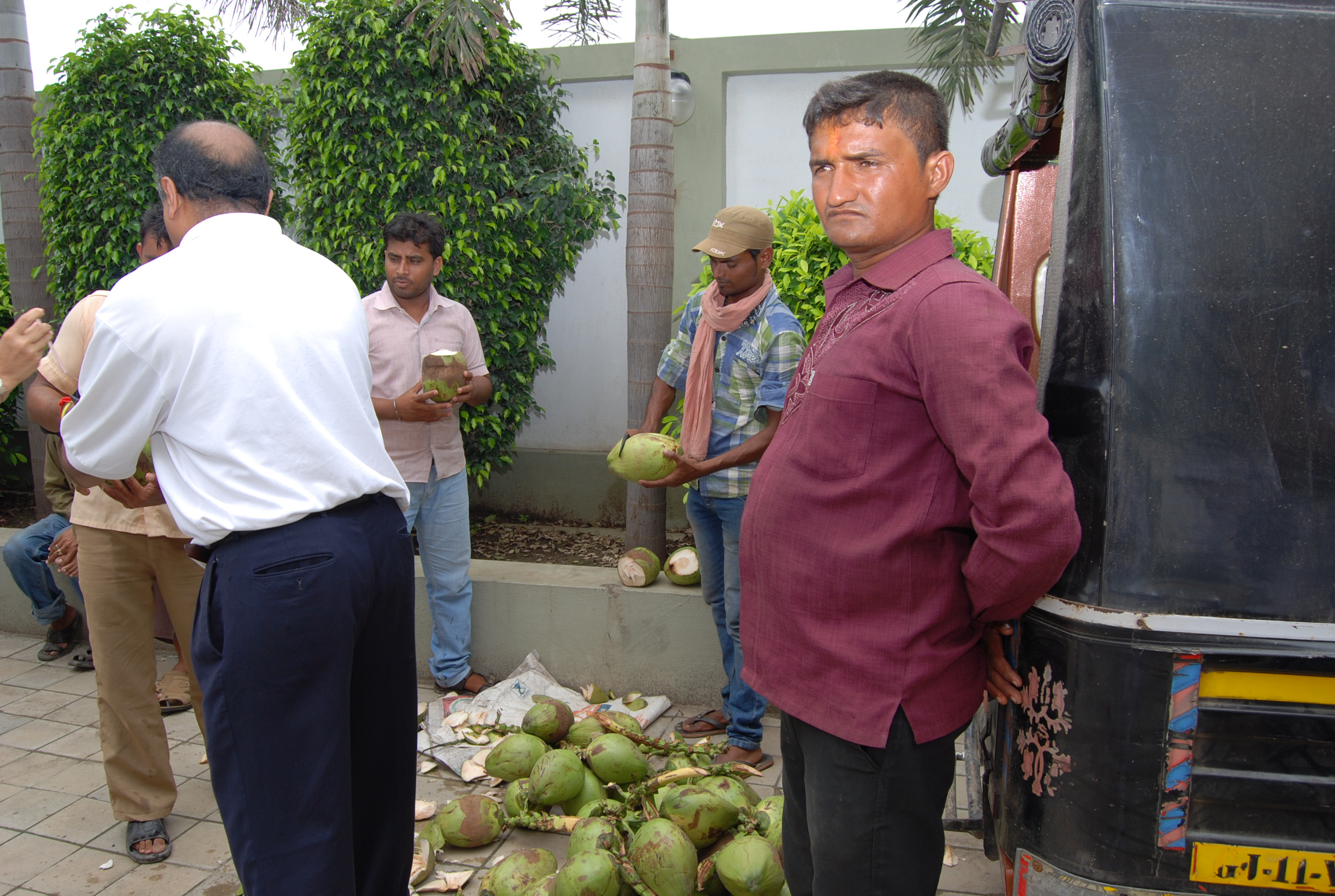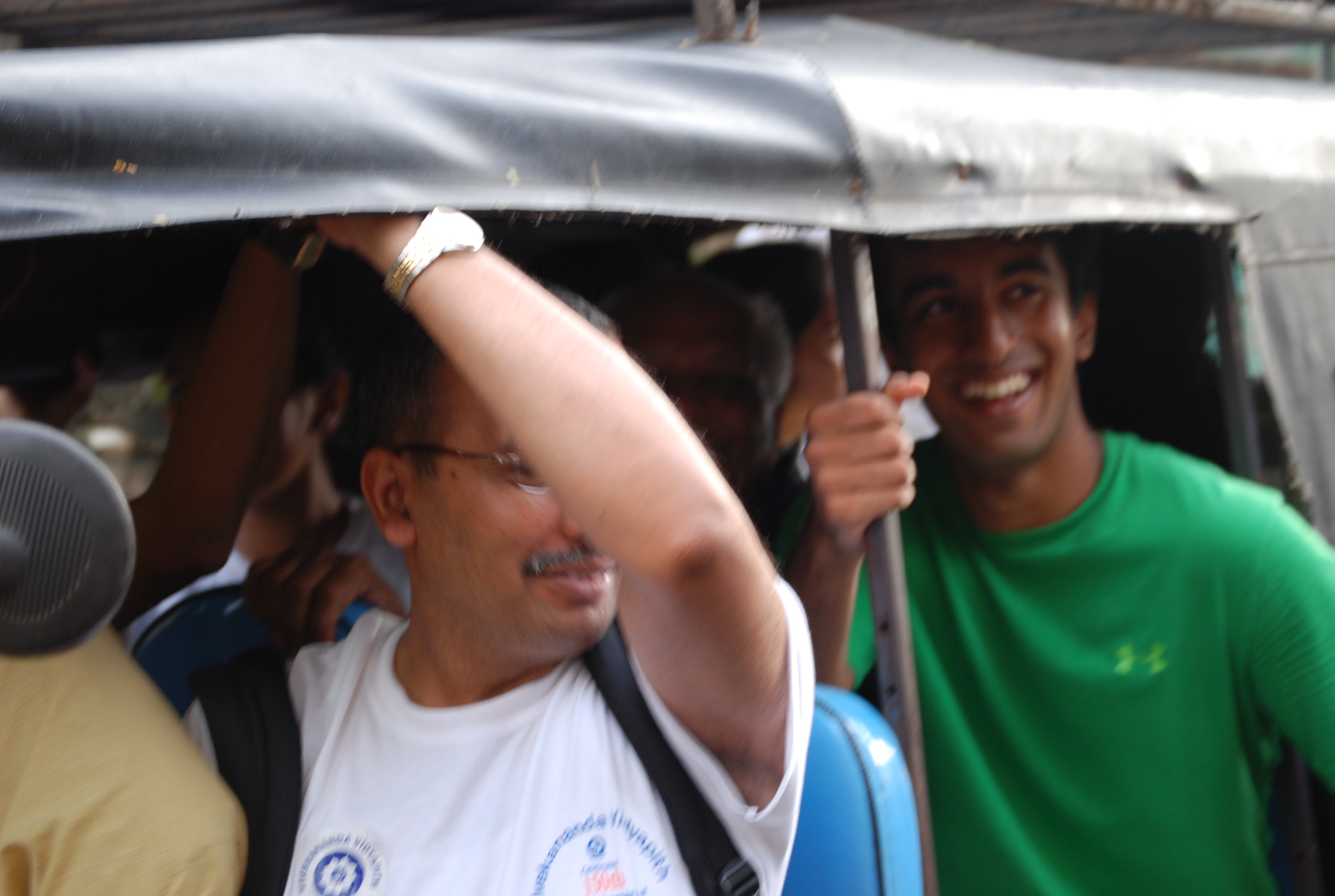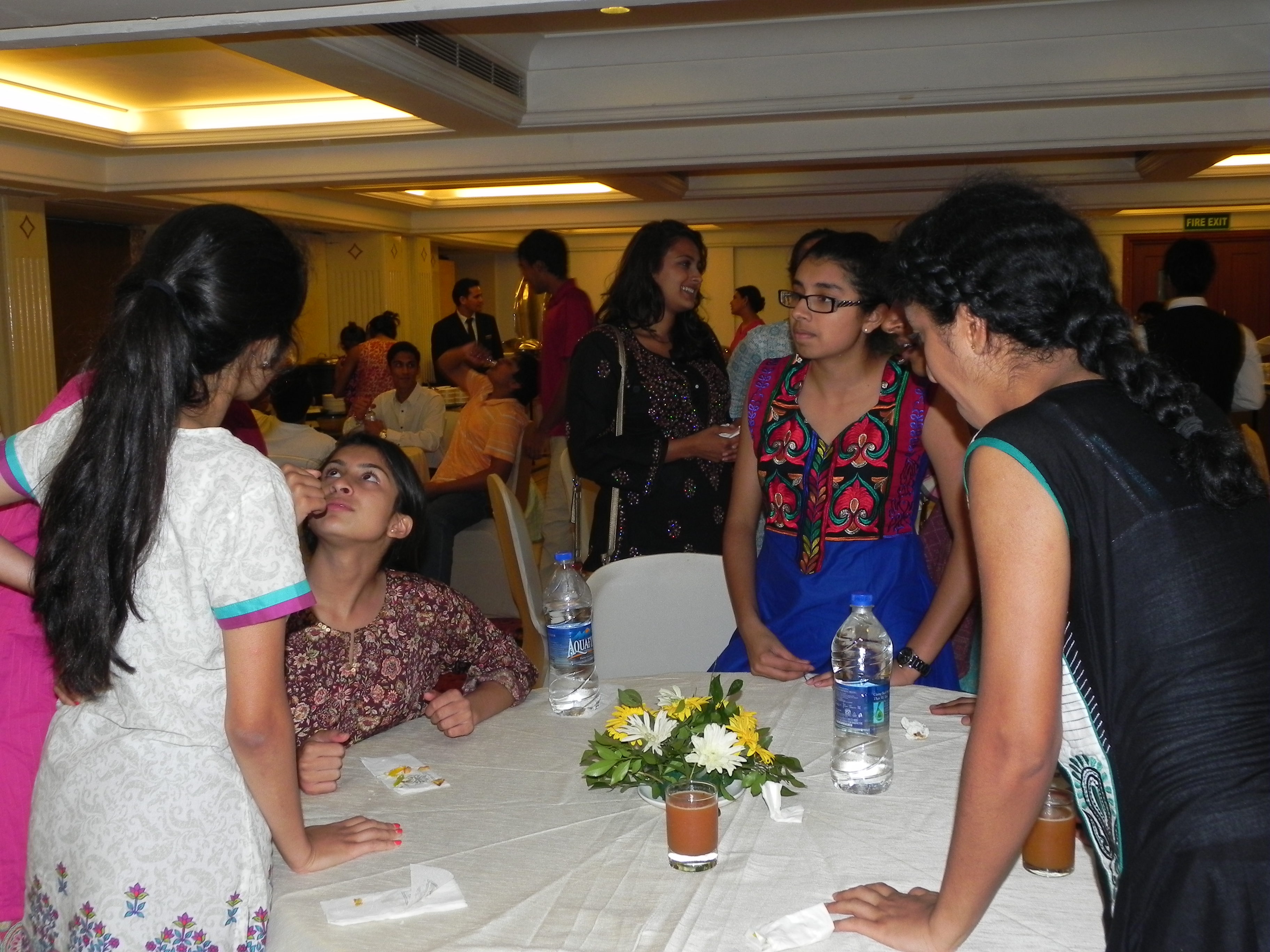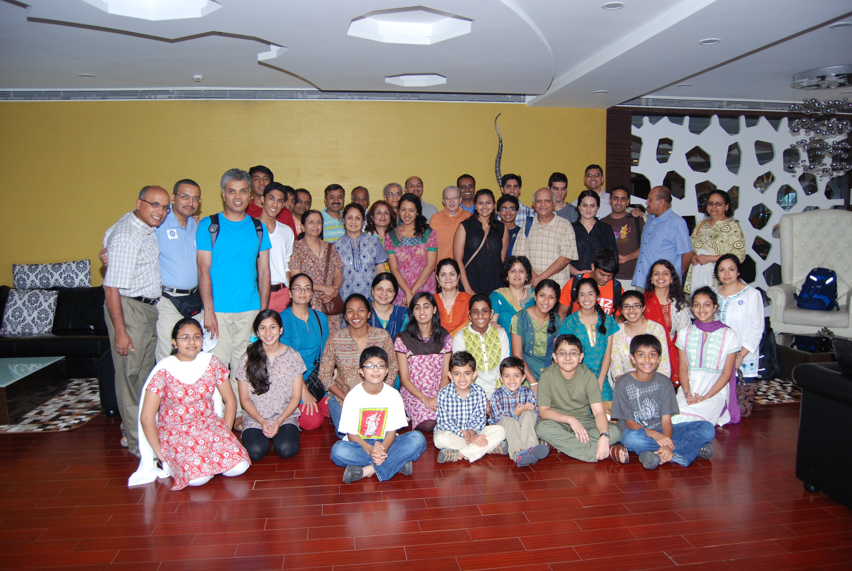 Nimishkaka or Nimishbhai, researched and bargained with all the hotels in the cities we visited. He was in constant communication with hotel owners and managers, and he even visited some of the hotels beforehand to see how they were. After we selected hotels he made all the reservations on our behalf. Nimishbhai took care of all our transportation logistics and anything we needed. He would always tell us to let him know if there was any work. One day, at the last minute we found out that Hotel Royal Orchid Central could not provide us a space for practice. Immediately, Nimishbhai arranged a big hall at a nearby club for our practice. Then, he was worried about our drinking water. He, himself, brought a huge package of large water bottles and carried them all the way upstairs. He was thinking of our needs ahead of time and got them done on time with a smile. He and his family hosted our lunch at Sankalp.