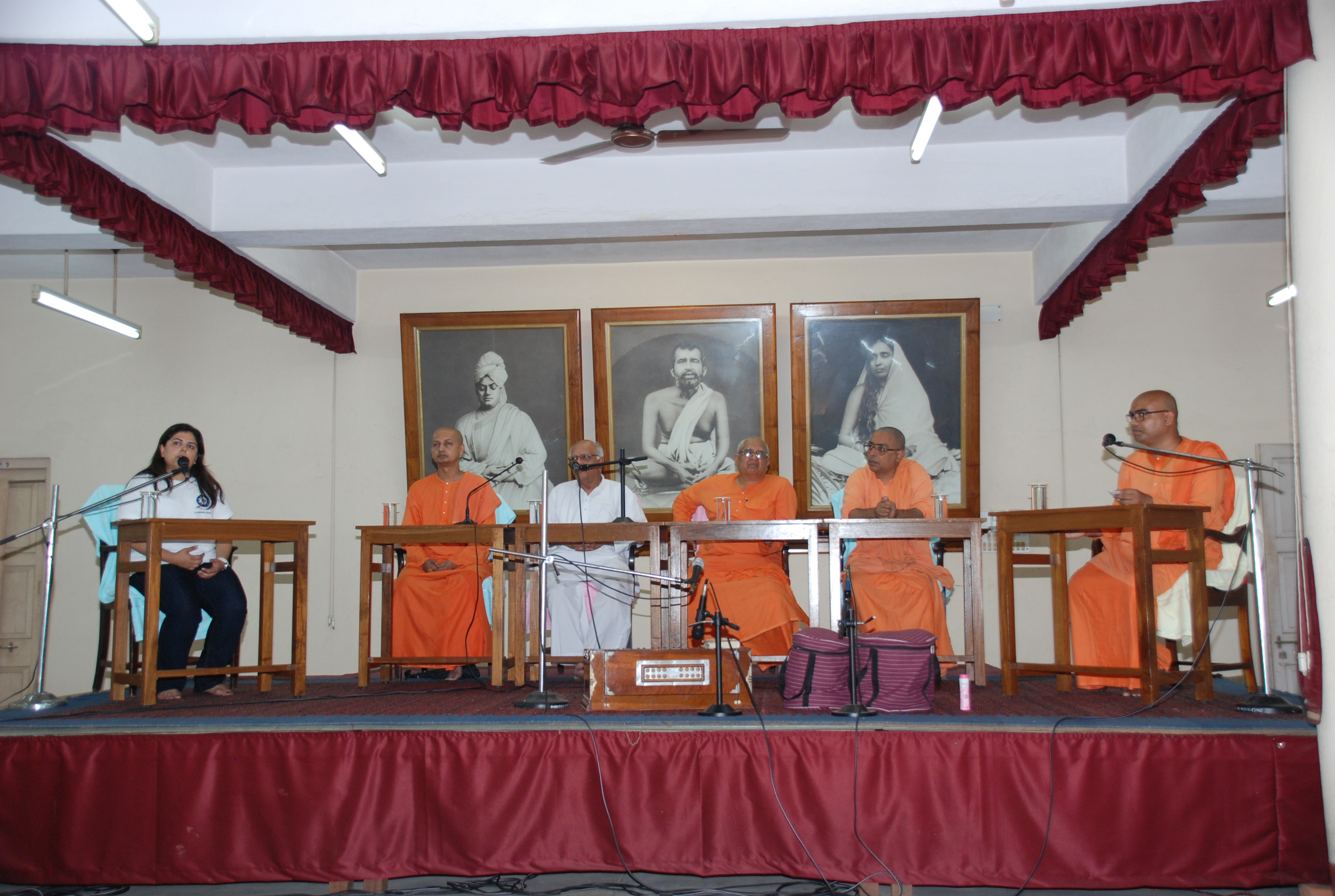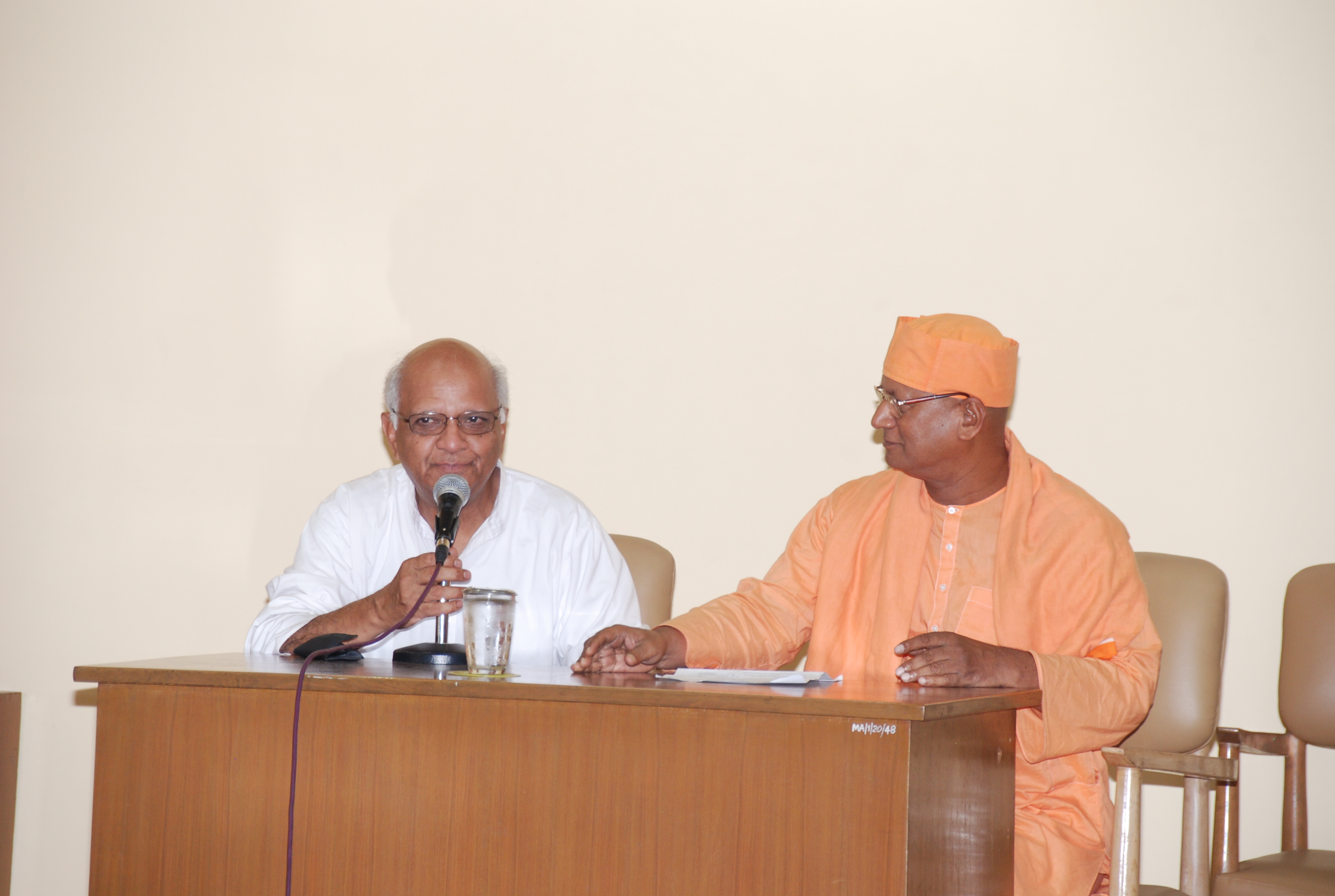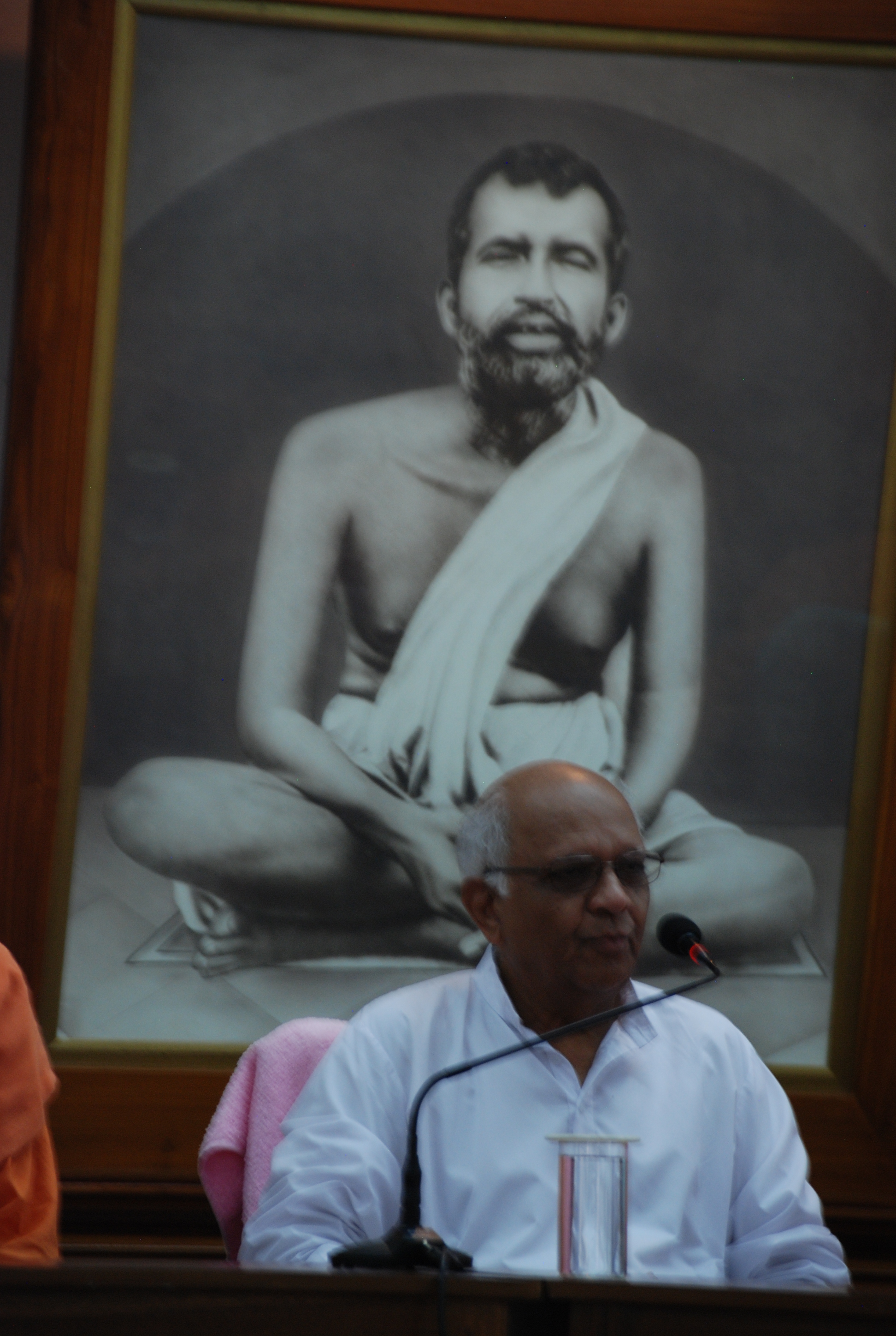 Two chairs and a table were set on the stage. Finally, the hall started cooling down and Rev. Swami Suparnanandaji, the Head of the Ramakrishna Mission Institute of Culture, arrived. He asked Uncle to sit on the second chair next to him on the stage.