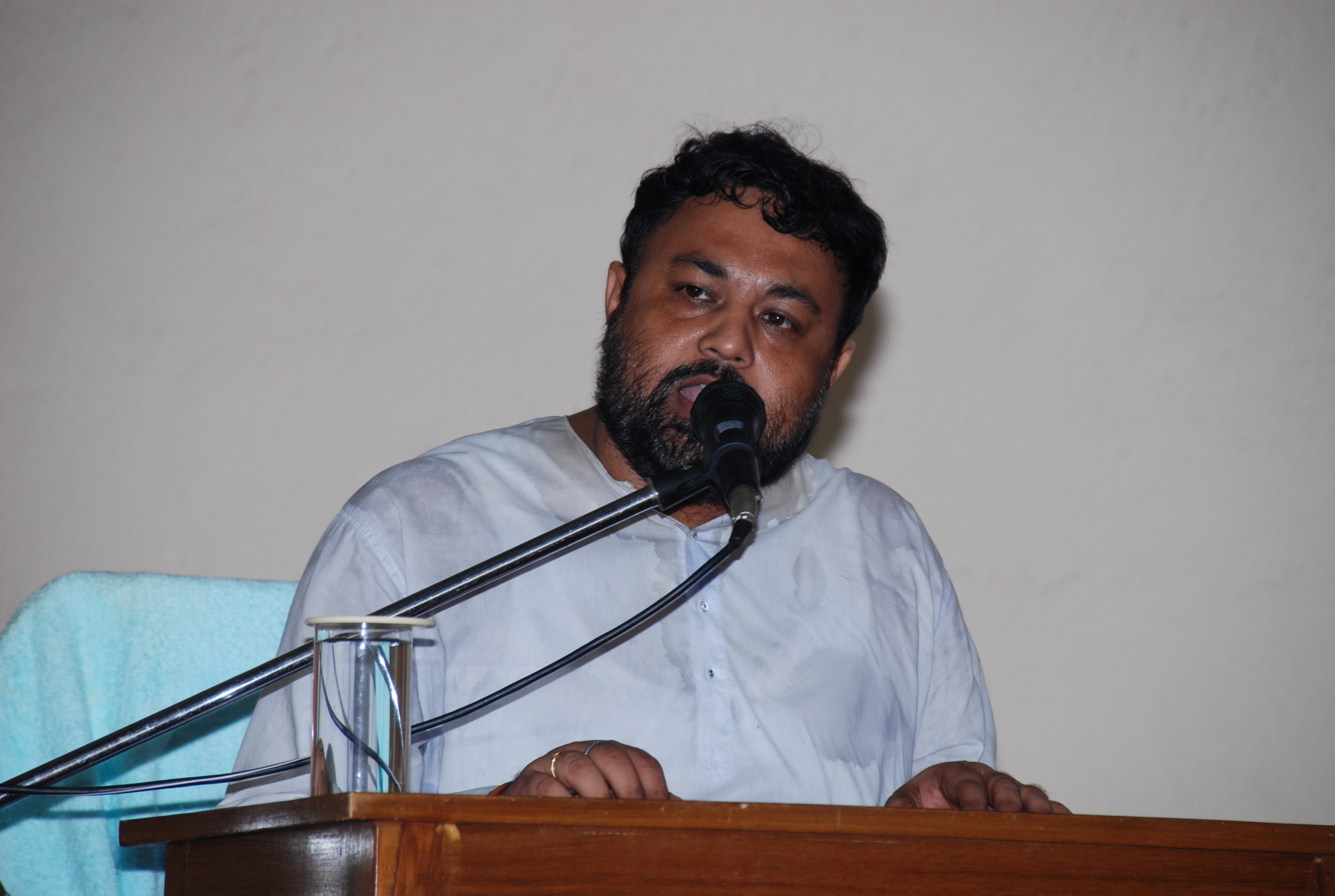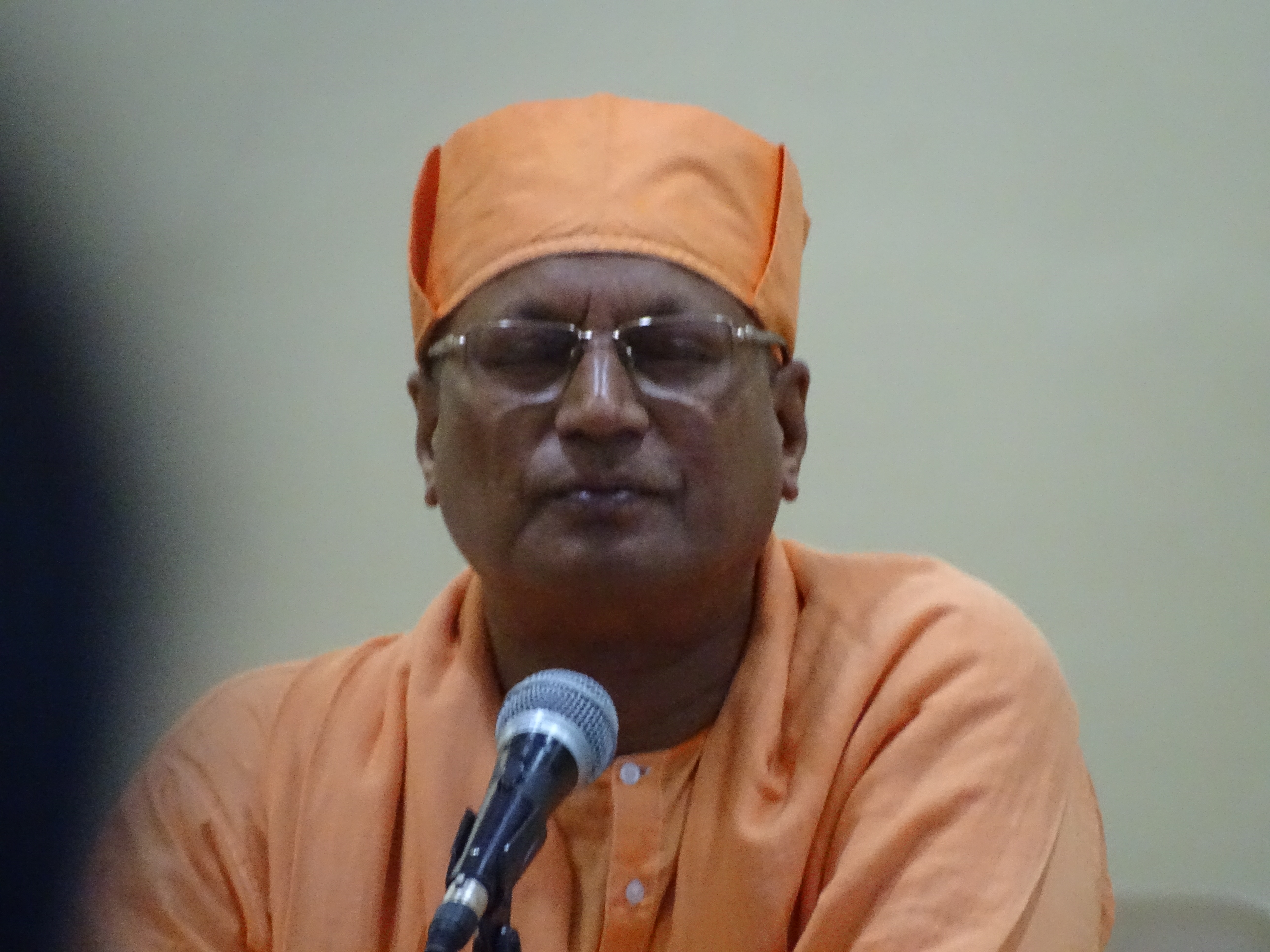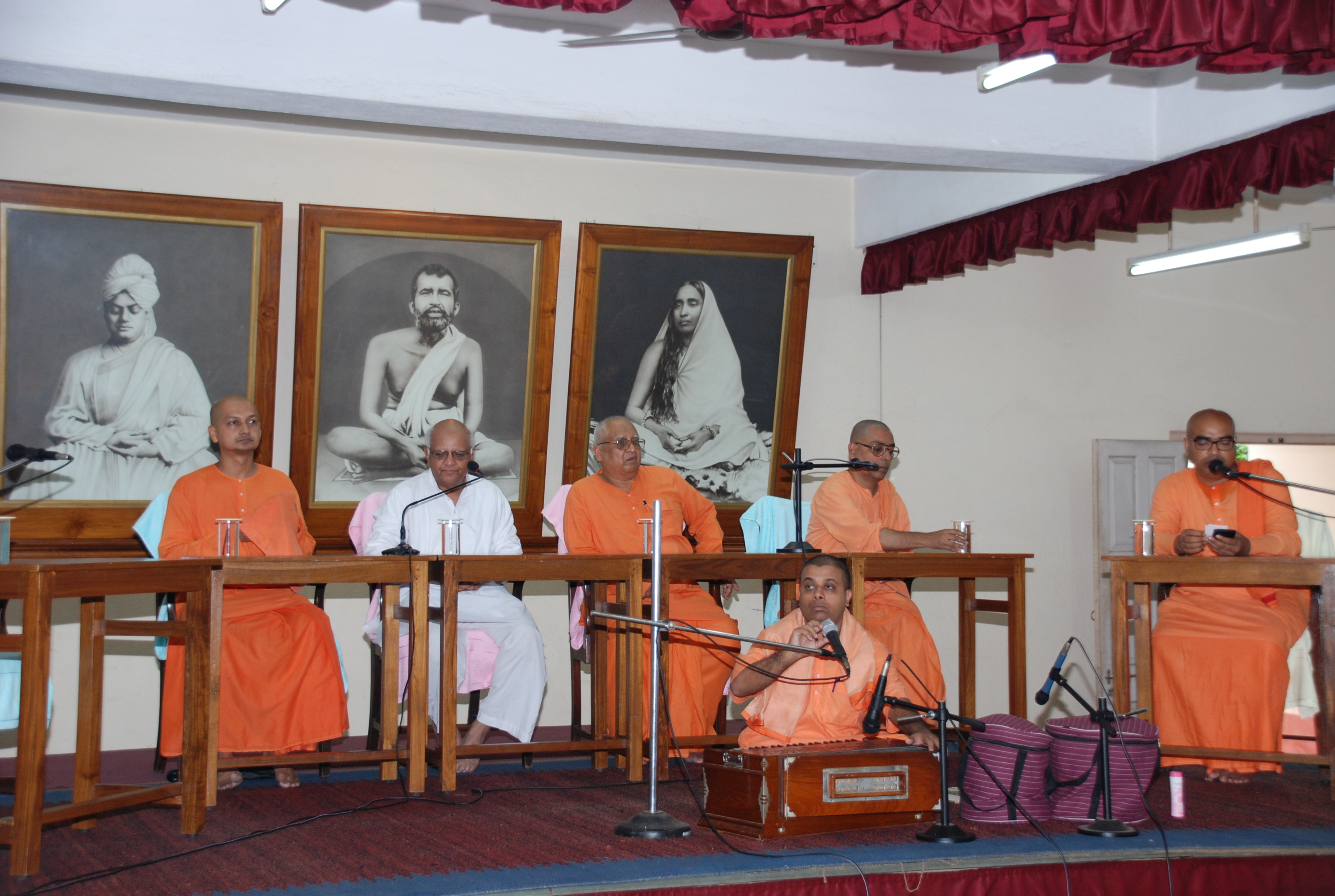 Two chairs and a table were set on the stage. Finally, the hall started cooling down and Rev. Swami Suparnanandaji, the Head of the Ramakrishna Mission Institute of Culture, arrived. He asked Uncle to sit on the second chair next to him on the stage.