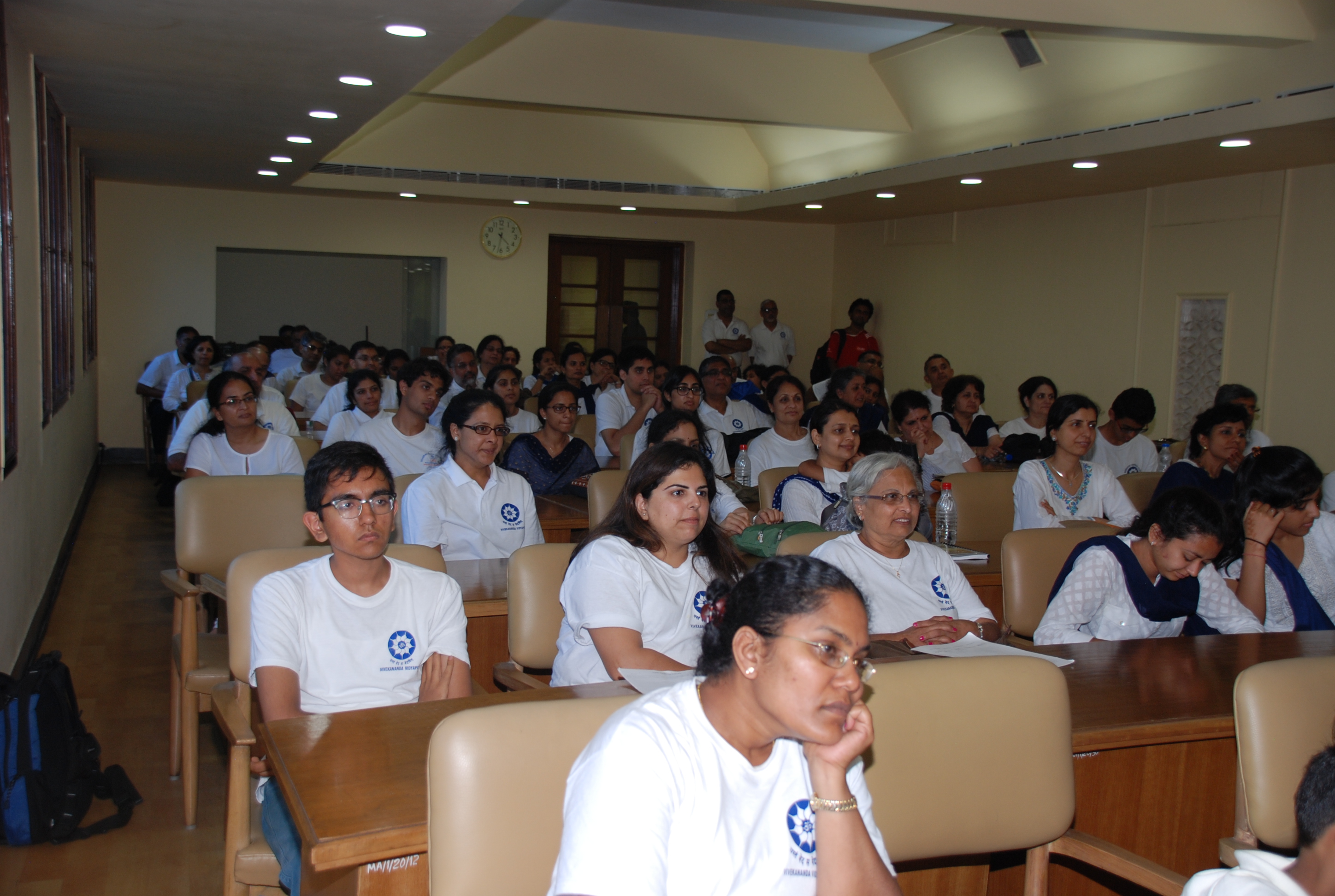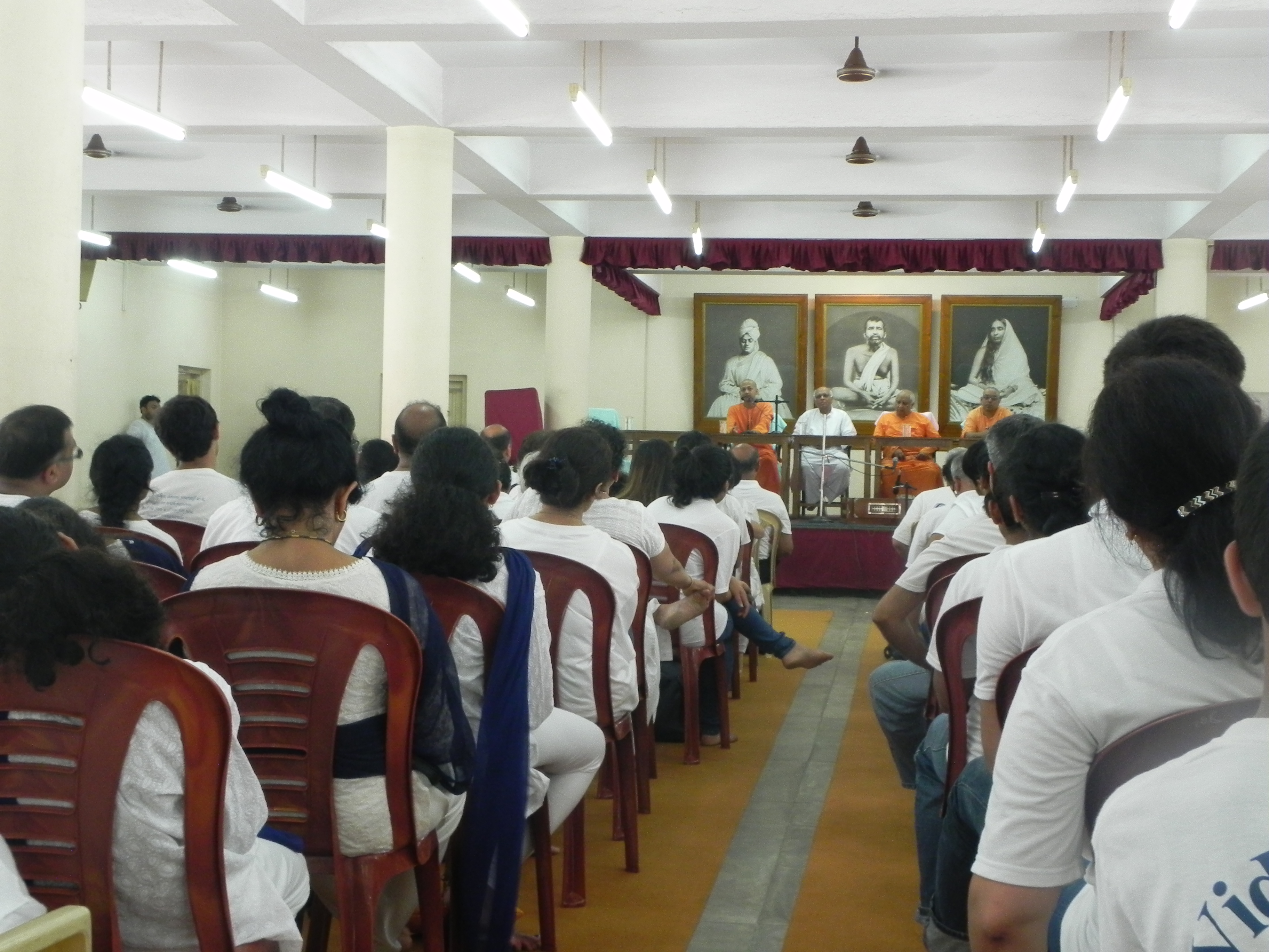 After browsing the library at the Institute, we were lead to a lecture hall (which was big enough to fit us all!). As we waited for Rev. Swami Suparnandaji, Trupti Aunty and others started singing “Rama bhajo bhai Rama bhajo, Rama bhajo bhai Rama, Rama bhajo bhai Rama Sita Rama bhajo bhai Rama.”