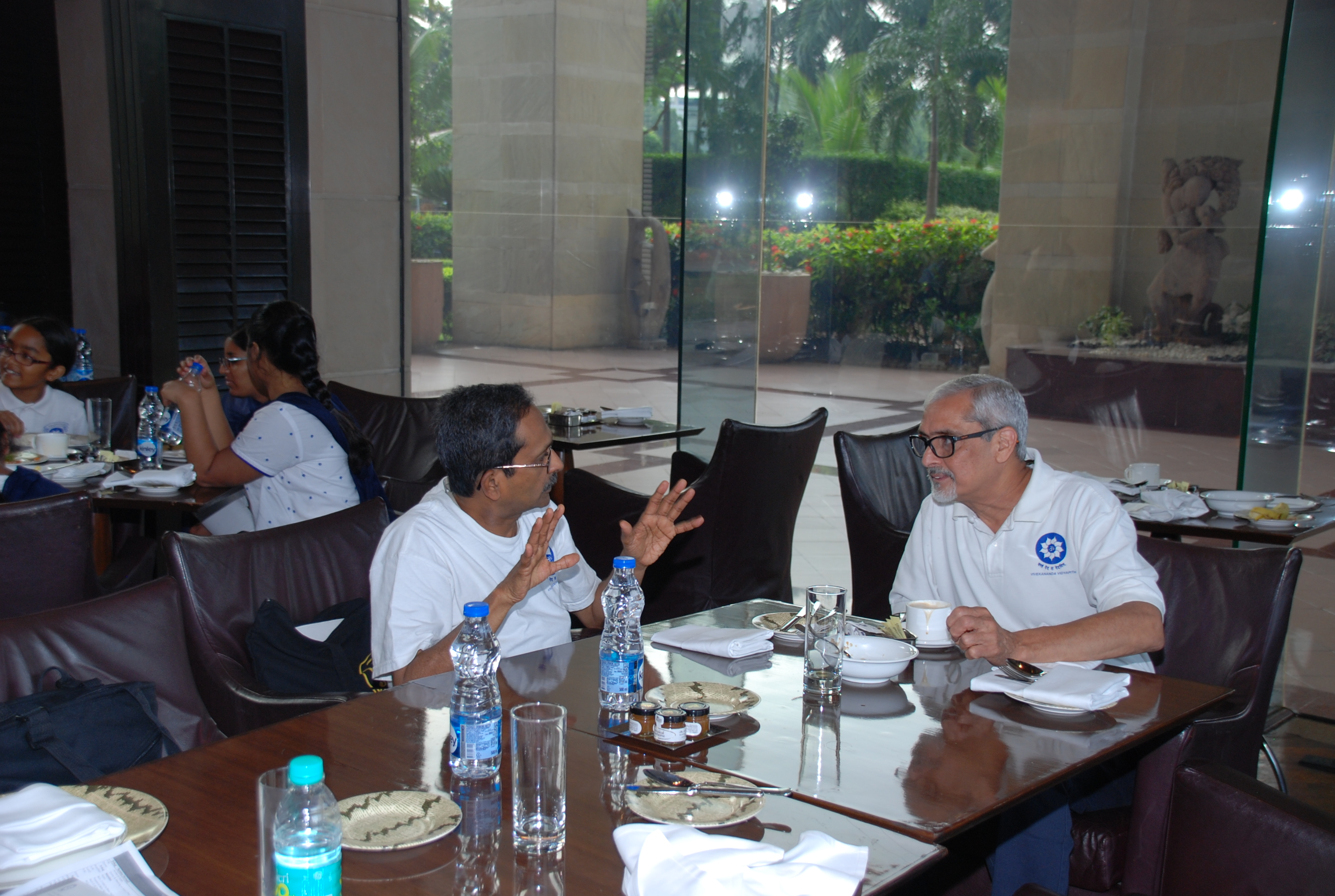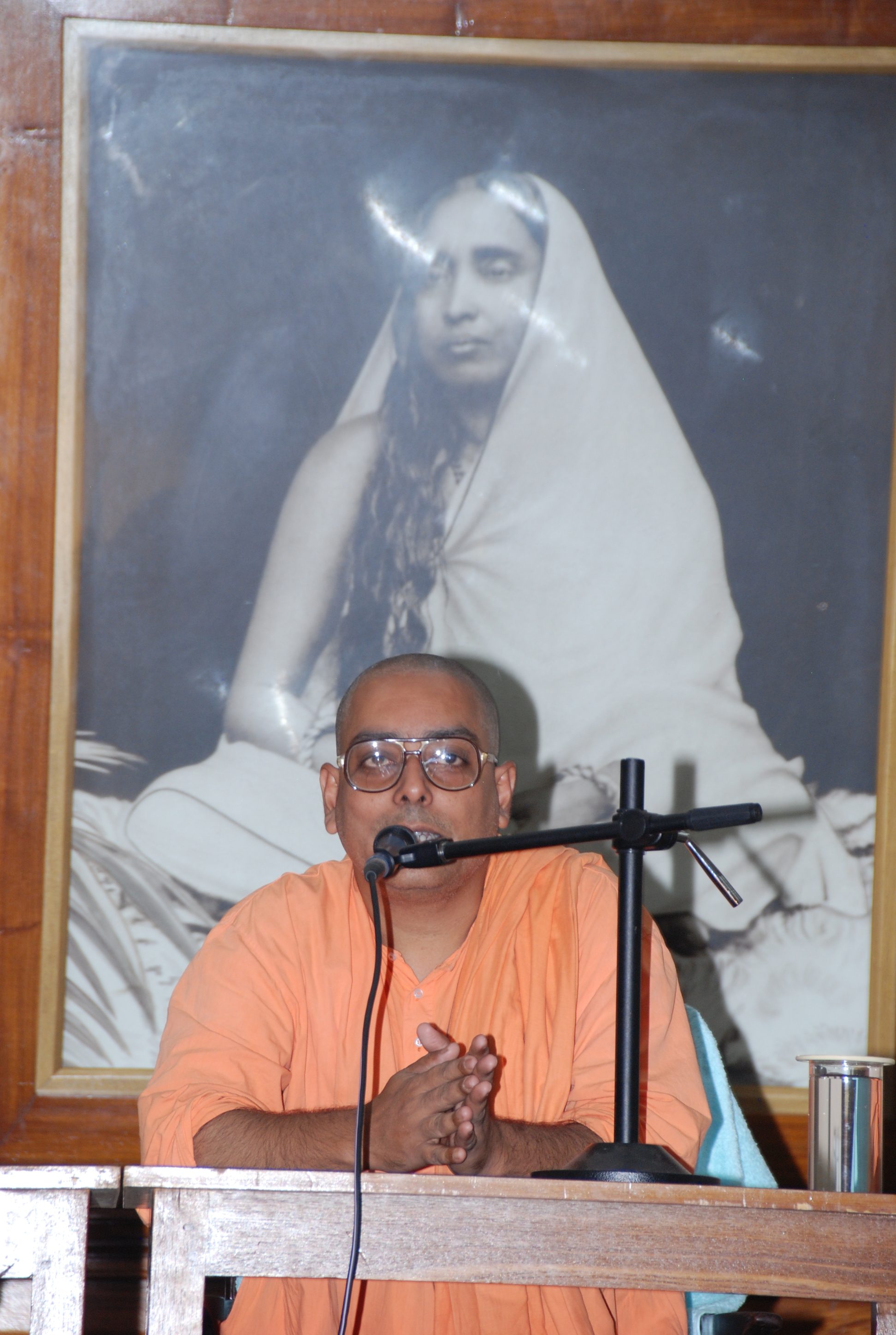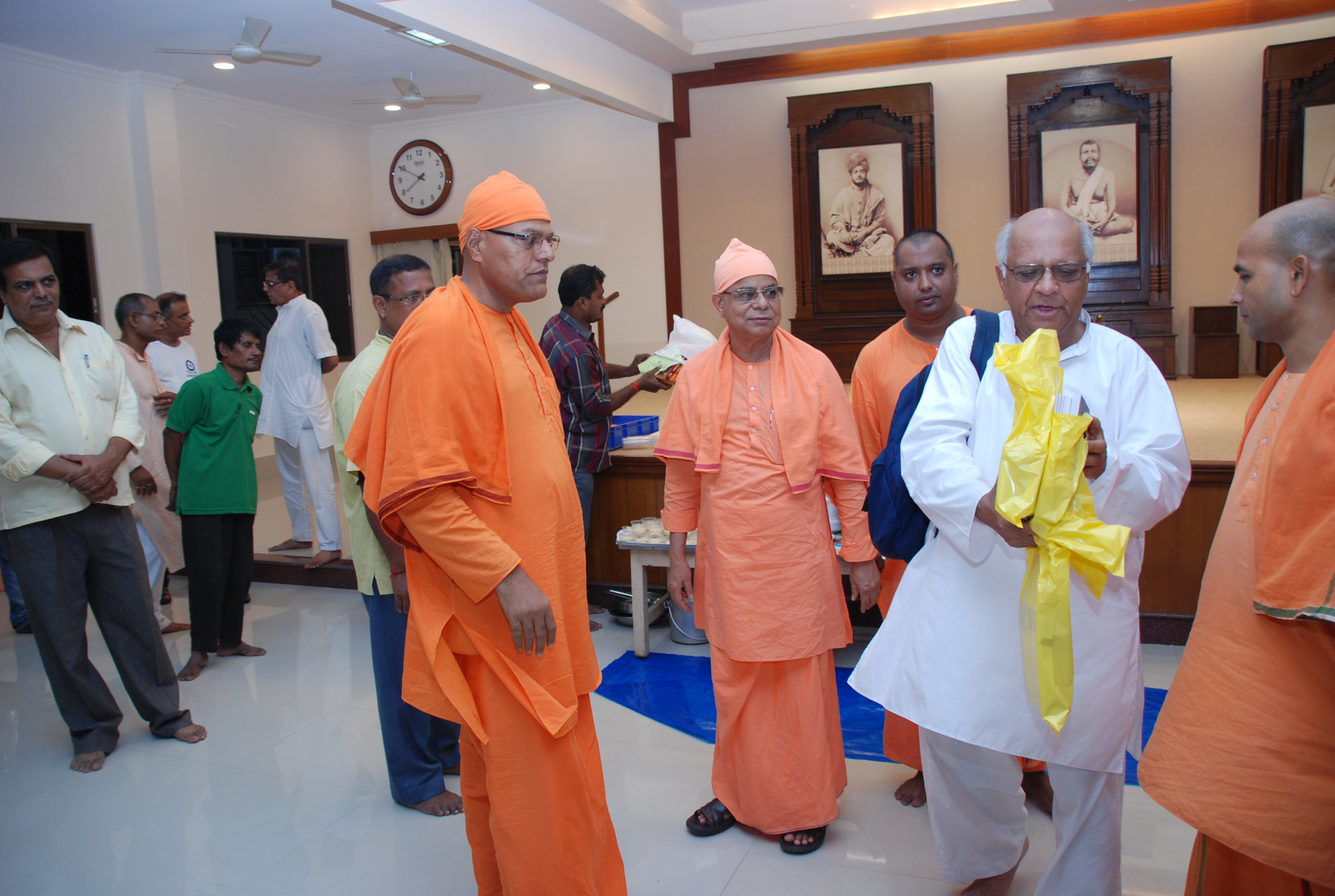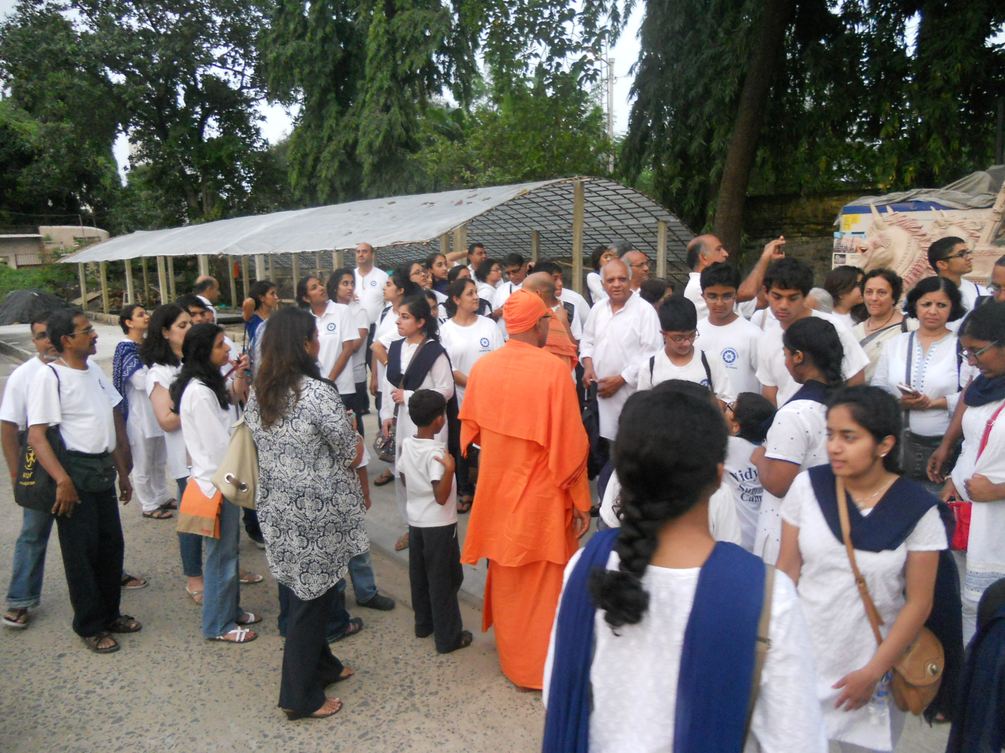 Uncle introduced Rev. Swami Suparnanandaji and thanked him for giving his valuable time to share his thoughts with us. Rev. Swami Suparnanandaji talked about the importance of having a spiritual guru as well as practicing meditation and pranayama to help us manifest that divinity within. He further discussed how we think we are seeing with our eyes but actually we are seeing with our minds. That is why in the dream state we are not looking at the dream with our eyes but with our minds. Hence, if we have a pure mind we can see things in their true nature. Rev. Swami Suparnanandaji asked if Dr. Vandana Jani (Aunty) was in the audience. Finding that she had not accompanied the group to come to India, the Swami jokingly said that is the reason why Dr. Mahendra Jani (Uncle) is very quiet 🙂