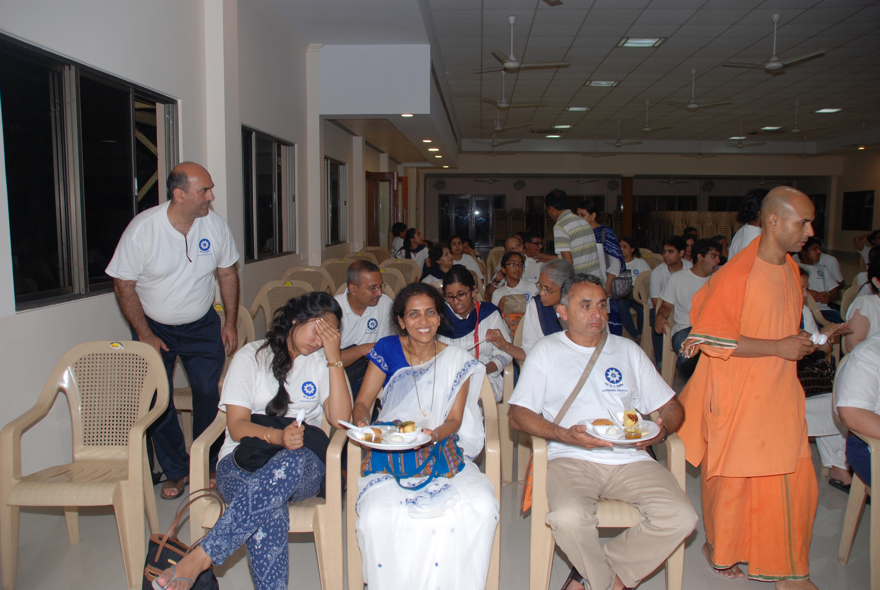 After our picture, the Swamis took us to a reception hall where refreshment including freshly made “Khamans,” “Sandesh,” soft drinks, water, and tea were ready for us. Rev. Swami Pradhanananda (Suhas Maharaj) had taken care of our refreshments. Many enthusiastic volunteers lovingly served us. The Swamis made sure that we all were served to our full satisfaction. Here again, the Swamis had gone out of their way to welcome us and with so much love and care kept all the refreshments ready for us. We felt nothing but the grace of Thakur, Maa, and Swamiji.