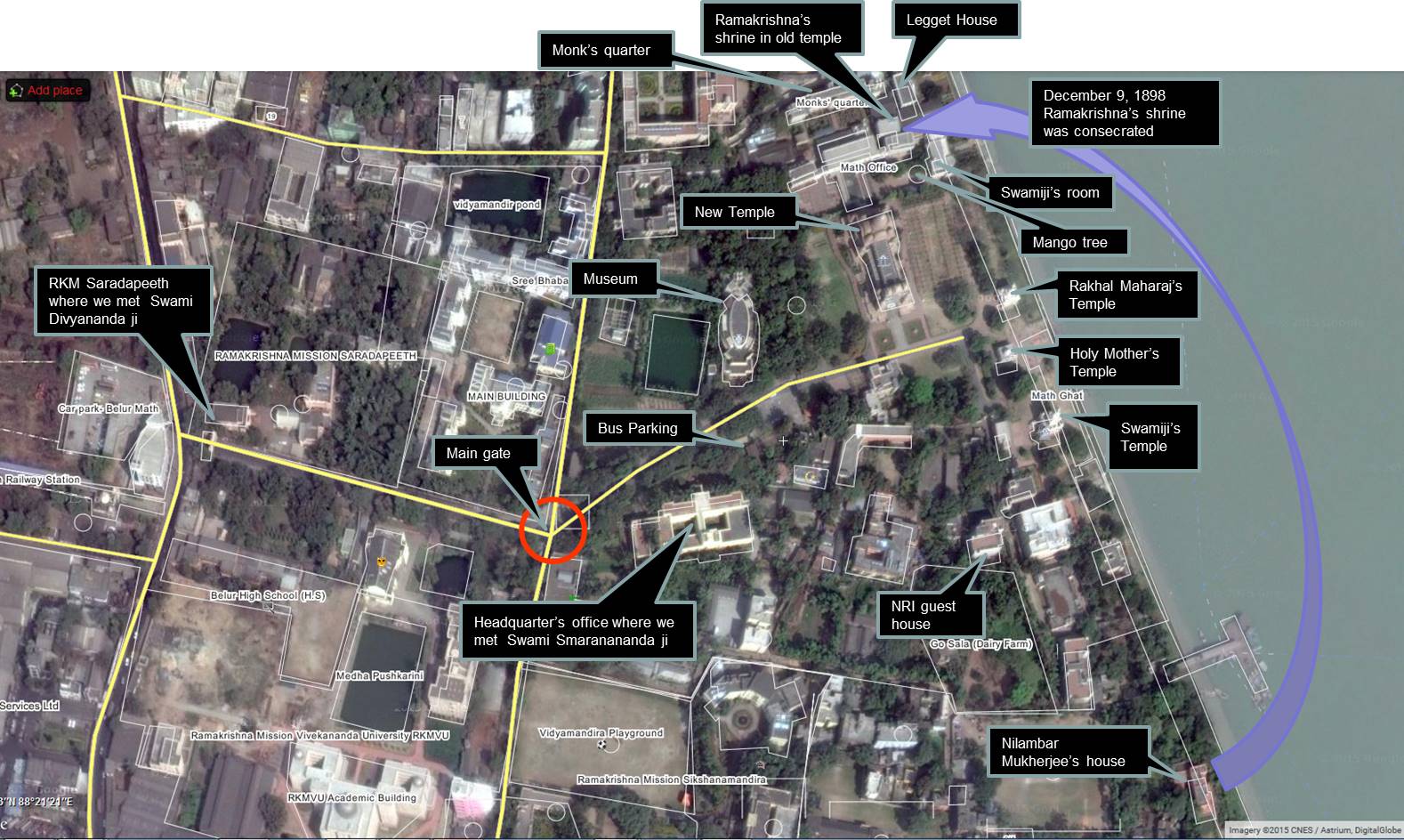 (Thanks to Nisha Parikh for writing this post and Ronak Parikh for editing. Thanks to Deba Uncle for creating the Bus Tour Map and providing us the information that connected the incidences and conversations from Shri Ramakrishna’s life to the Bus Tour landmarks.)