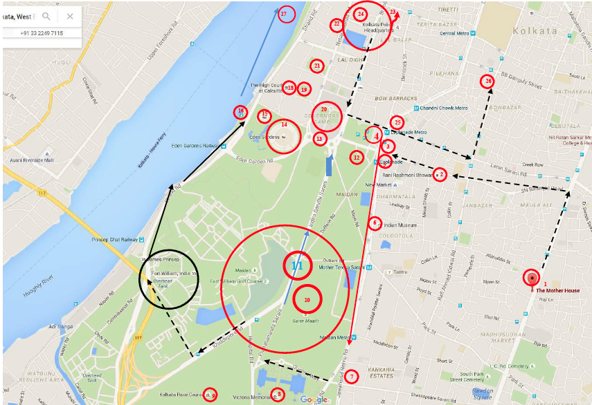 Click on this link to open a larger map: Kolkata Bus Tour Map