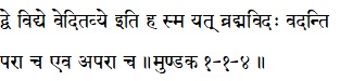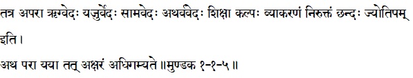 “Of these two, the lower knowledge is the knowledge of Rig-Veda, the Yajur-Veda, the Sama-Veda, the Atharva-Veda, Siksha (phonetics), Kalpa (rituals), Vyakarana (grammar), Nirukta (etymology). Chhanda (meter), and Jyotish (astronomy); and the Higher Knowledge is the one by which the imperishable Brahman is attained.”
