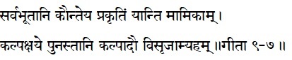 “O Arjuna! At the end of the cycle, all beings enter into My (Brahman’s) Prakriti (Maya), and at the beginning of a cycle I create them again.”