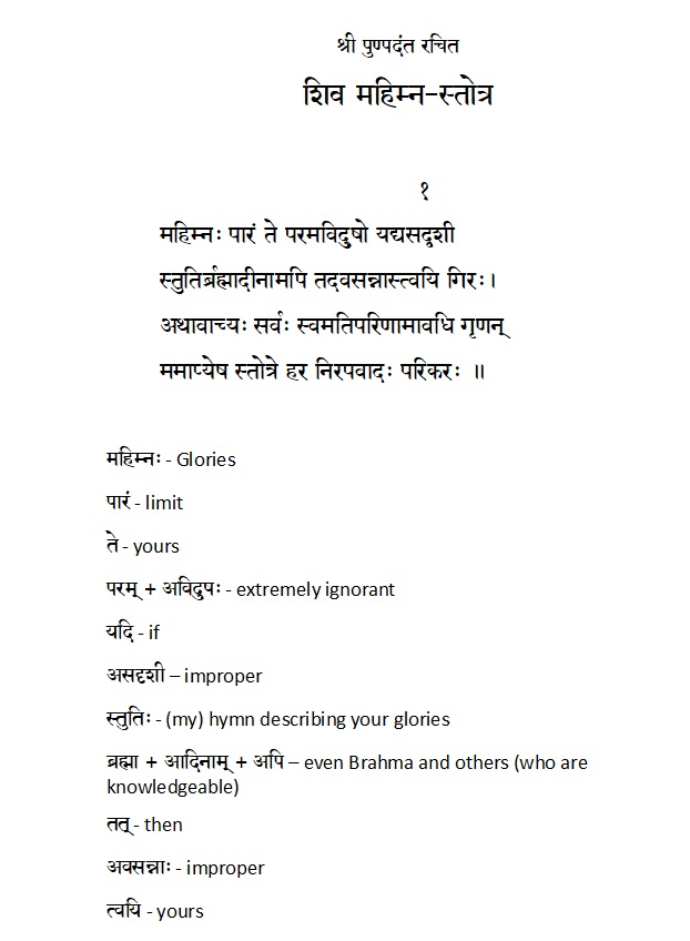 1. Thanks a lot Uncle. Shiv mahamna is my most favorite stotra. This will help, more so with meaning and reflection as it will make it easy to study and make it my own.