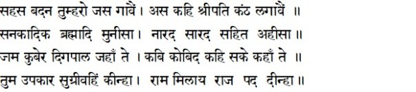 Sahasa badana tumharo jasa gaavai(n) asa kahi Shripati kantha lagaavai