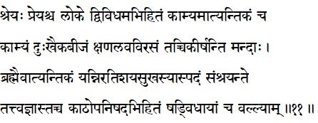 Meaning: In this world, there are two kinds of ‘Shreya’ (preferable) things and two kinds of ‘Preya’ (pleasurable) things: